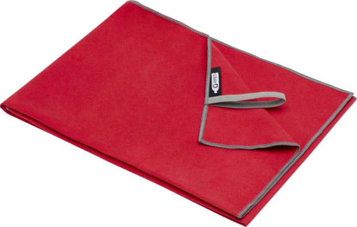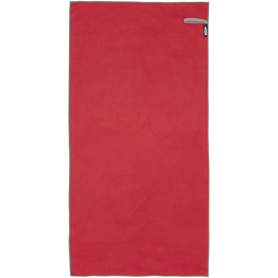 Sportovní ručník Pieter velmi dobře saje, je lehký, rychle schne a tkanina je odolná a extrémně měkká. Když je ručník složený a zajištěný elastickým páskem, je zmenšen na malou velikost, díky čemuž je vhodný pro nošení do posilovny, na koupaliště nebo na výlety nebo kempování. Ručník má rozměr 50 × 100 cm a je vyroben z 90% GRS recyklovaného polyesteru a 10% nylonu a lze jej prát v pračce na 40 °C. Dodáváno s úložným sáčkem (17 × 13 cm) vyrobeným z recyklovaného PET plastu, který poskytuje skvělou plochu pro tisk loga.