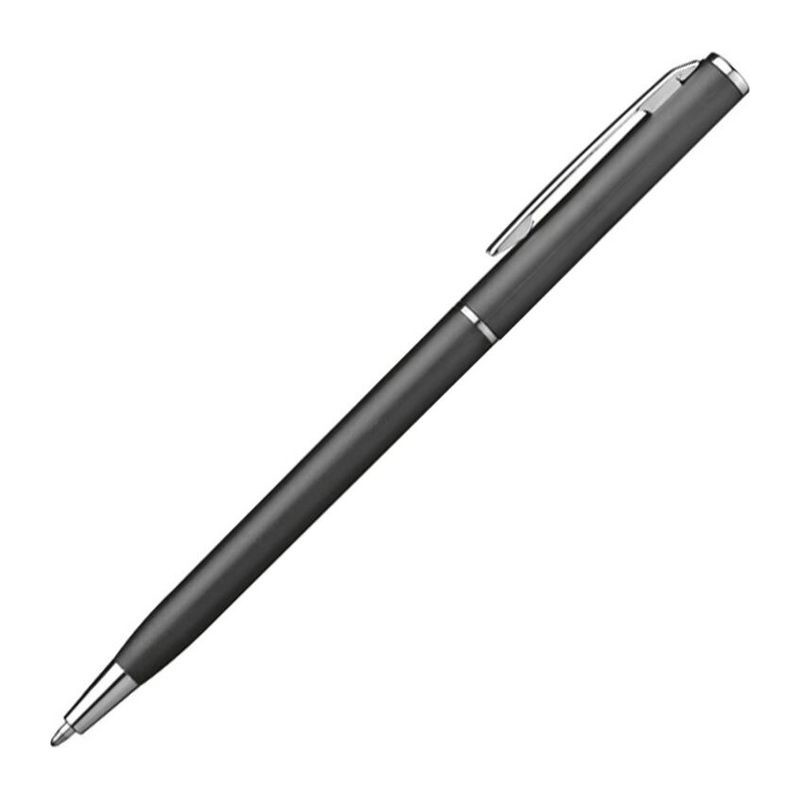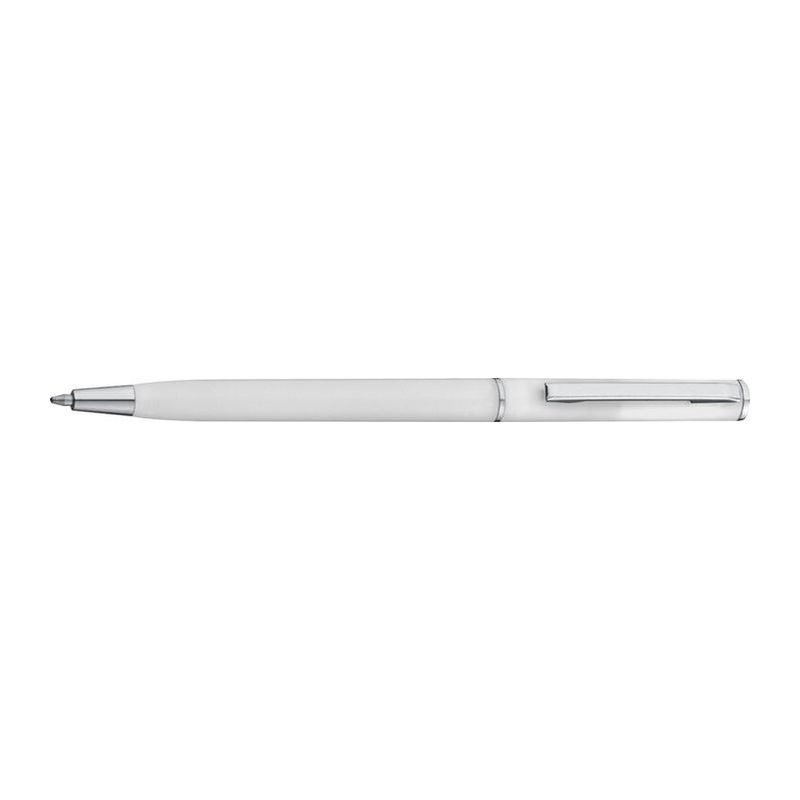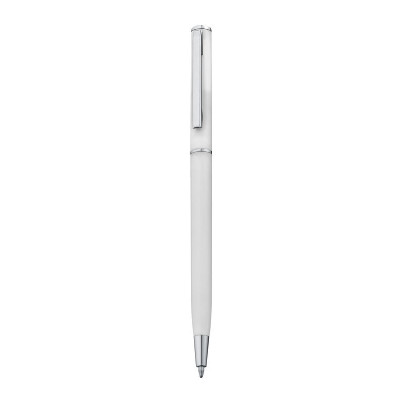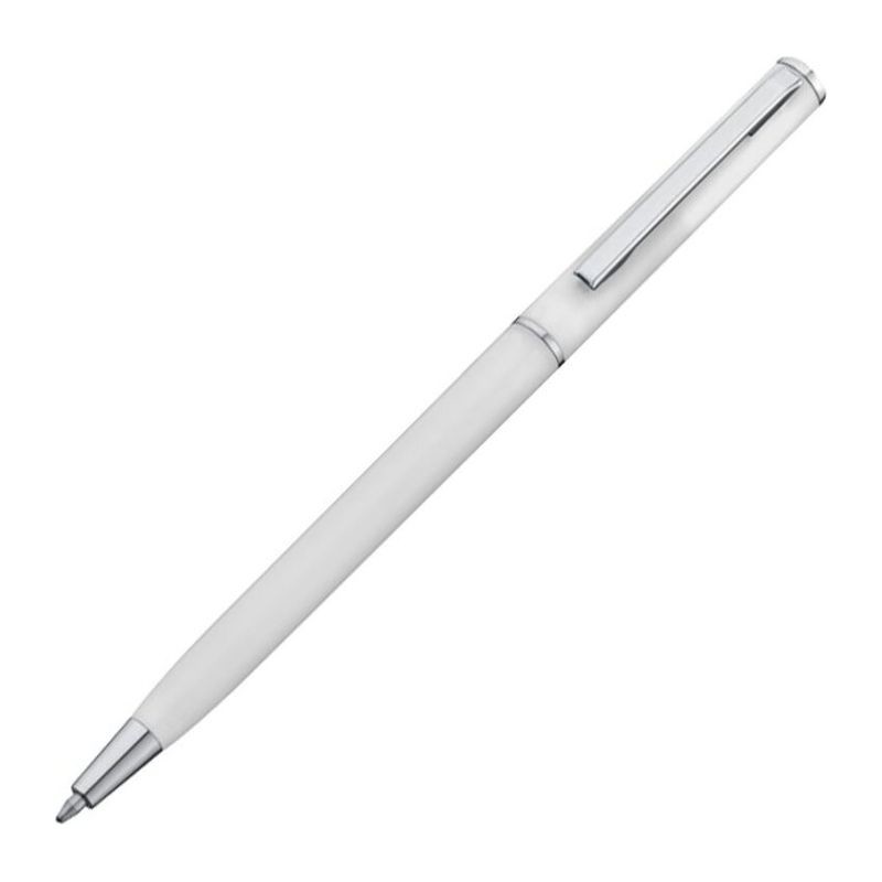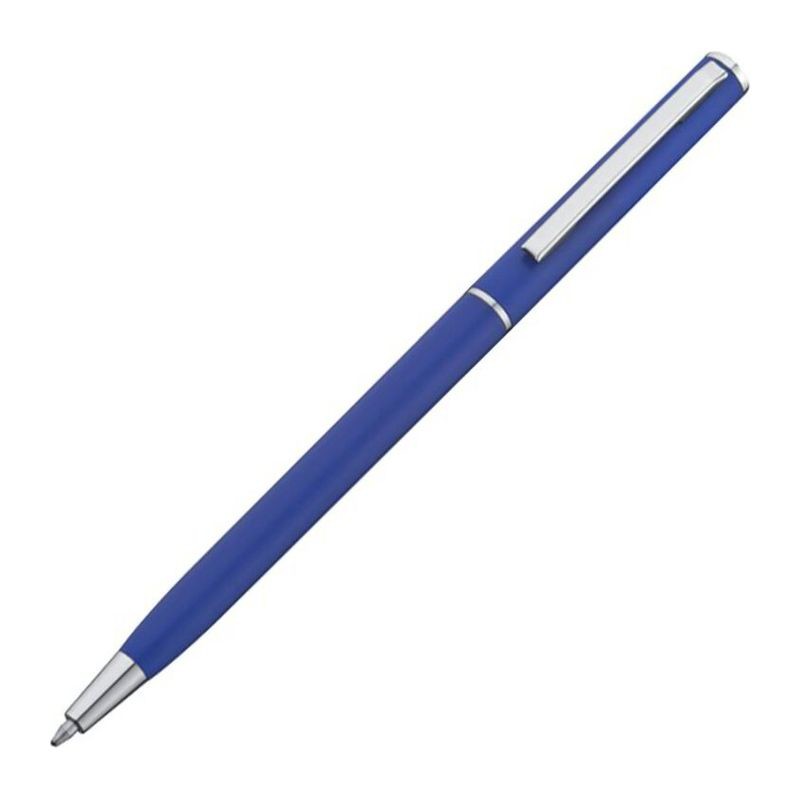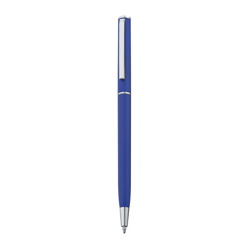 Kuličkové pero z plastu s modrou náplní. Toto kuličkové pero díky svému štíhlému tvaru dokonale hodí do smyček poznámkových bloků. Vaše logo umístíme při klipu tampónovým potiskem.