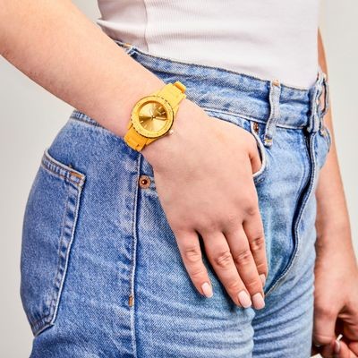 Hodinky Albane jsou hravými a zářivými doplňky se zlatými akcenty a jemnými texturami, které jim dodávají luxusní a ženský konečný dojem. Dostupné v 6 zářivých tónech: námořnická modrá, žlutá, hnědá nebo hnědá světlá, černá a světle modrá, lze je snadno kombinovat s ostatními doplňky z naší kolekce.