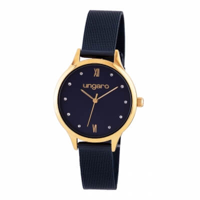 Hodinky "Pia" jsou ženské a rafinované. Jejich výrazné síťované řemínky a štíhlá pouzdra jsou ztělesněním elegance. Jejich číselníky slunečních paprsků jsou vylepšeny malými kamínky, které slouží jako hodinové značky. Voděodolnost 3ATM.
