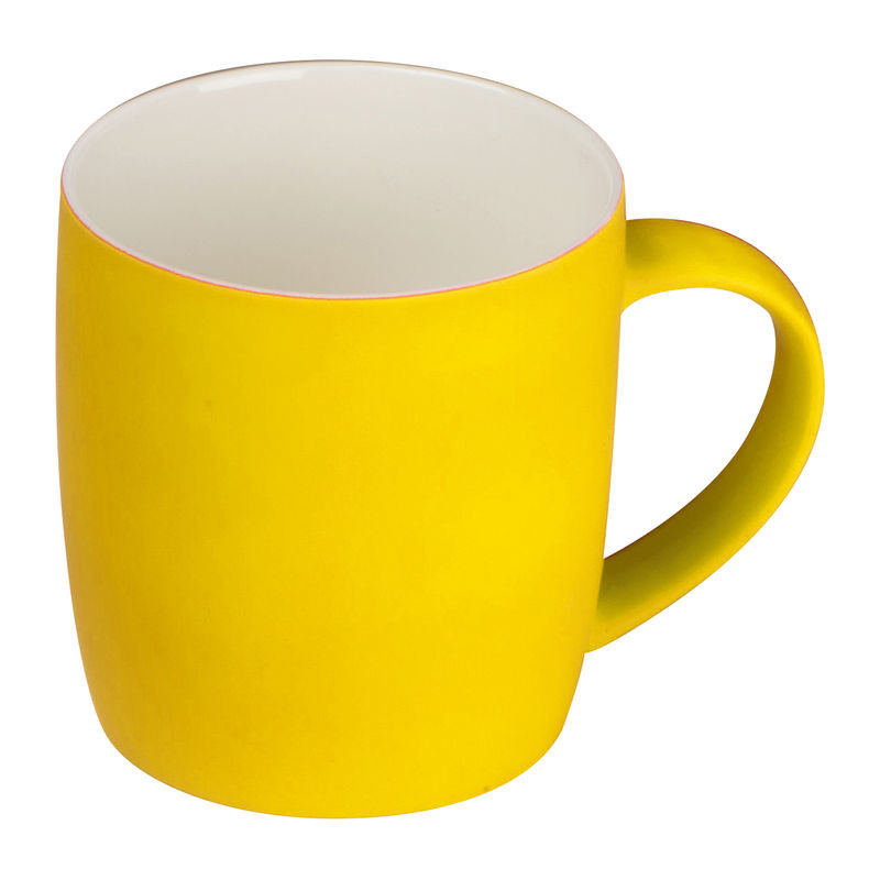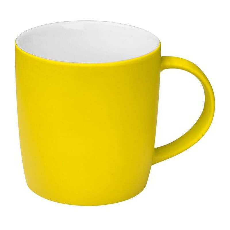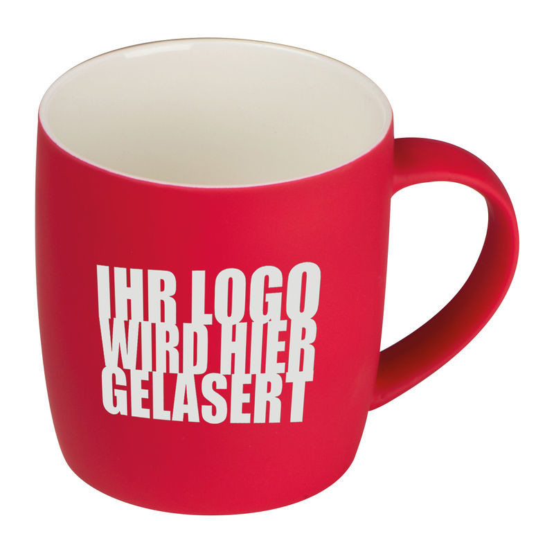 Keramický hrnek s gumovou povrchovou úpravou, v různých barvách, objem 300 ml. Způsob potisku CO2 gravírování.