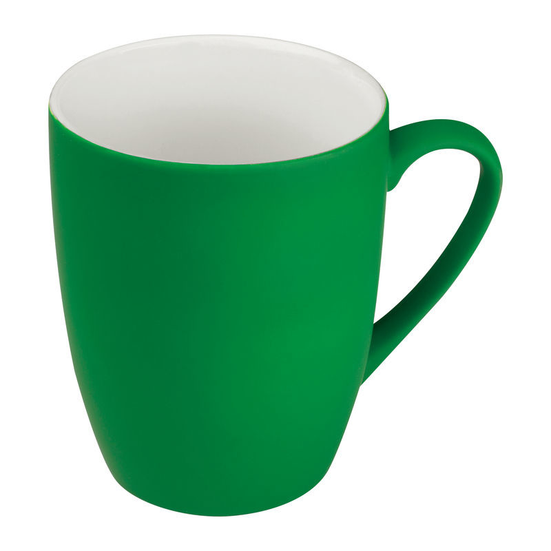 Keramický hrnek s gumovou povrchovou úpravou, v různých barvách, objem 300 ml. Způsob potisku CO2 gravírování.