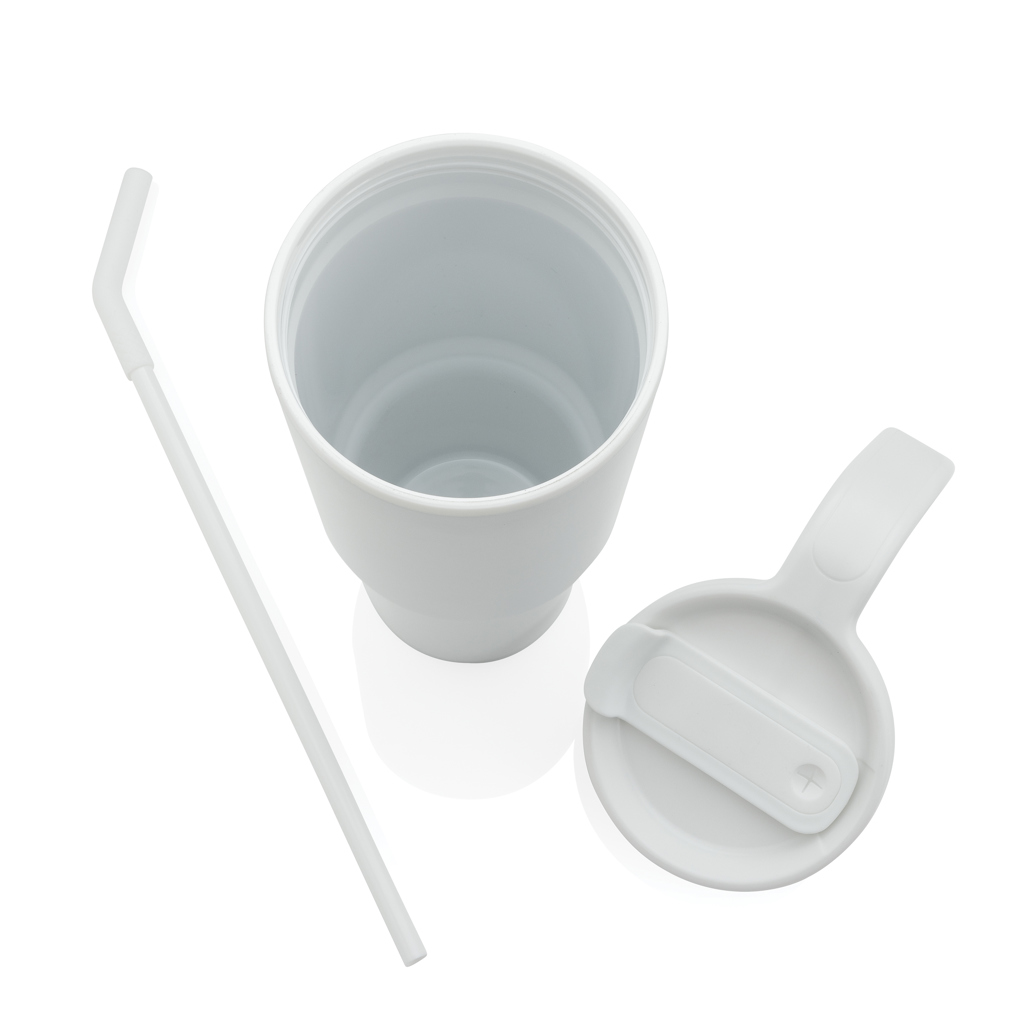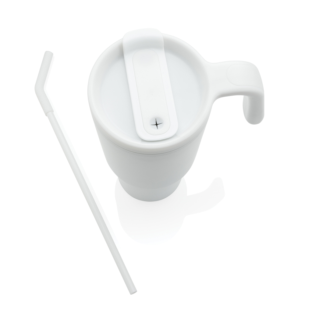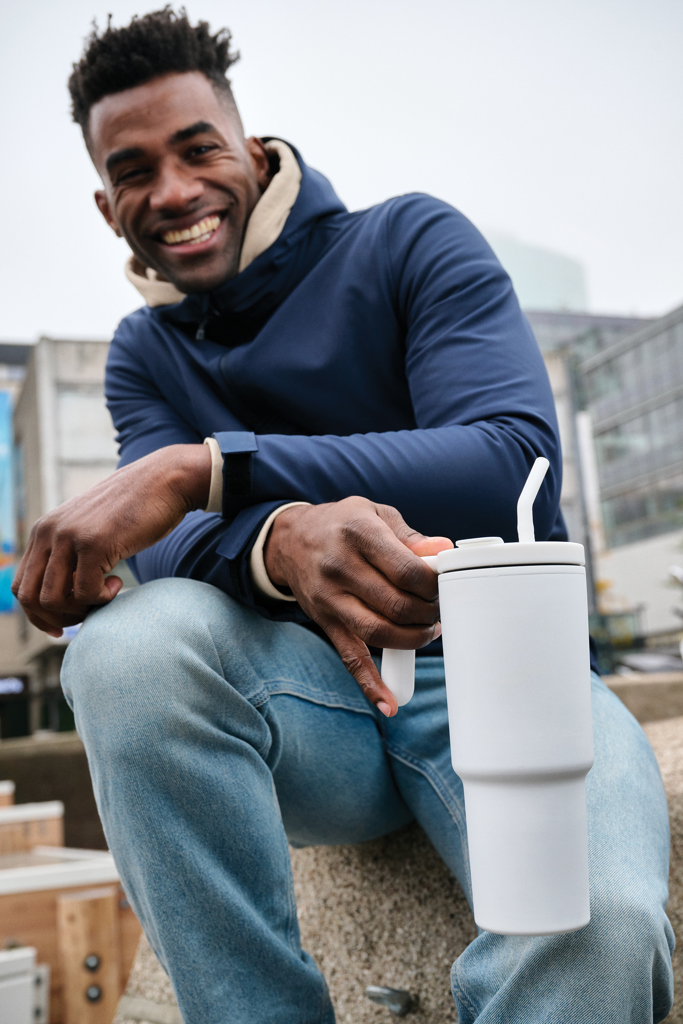 Nejoblíbenější hrnek je nyní vhodný pro dokonalý 360° potisk po celé ploše. Hrnek je vyroben z recyklovaných materiálů. Inovativní víčko má otočný uzávěr se třemi polohami: otvor pro brčko odolný proti rozlití, náustek na pití a zcela uzavřené víčko. Ergonomická rukojeť s pohodlným úchopem zajišťuje snadné přenášení a tenká základna se hodí do většiny držáků nápojů v autě. Recyklovaný obsah z celkové hmotnosti výrobku: 36 %. Pouze ruční mytí. Neobsahuje BPA. Objem 900 ml. Včetně dárkového balení z kraftového papíru s certifikací FSC®.