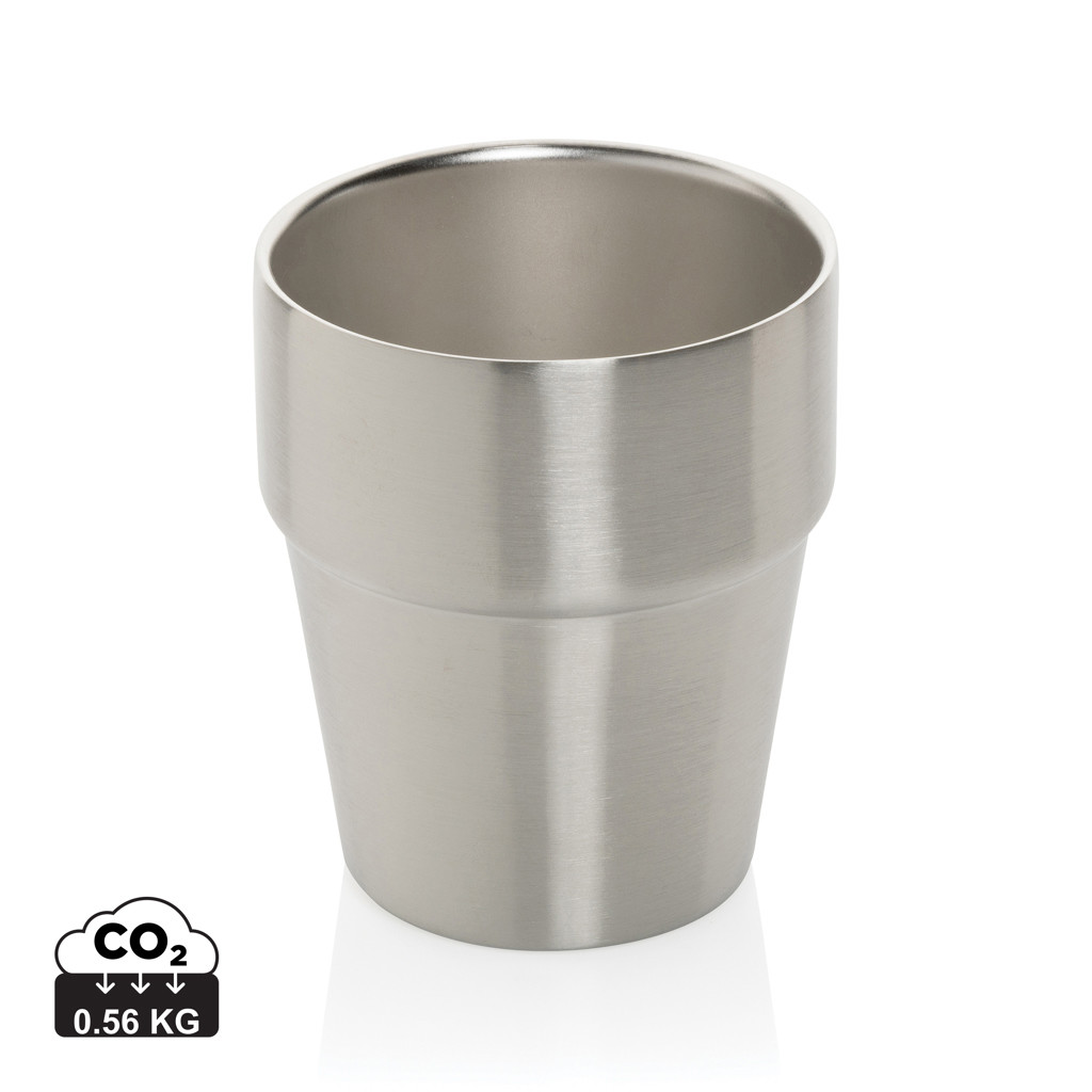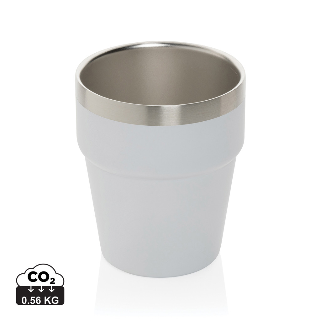 Termohrnek s dvojitou stěnou ideální pro použití pod kávovar. Vyrobený z RCS recyklované nerezavějící oceli. RCS (Recycled Claim Standard) je globální standard, který umožňuje ověřit použití recyklovaného materiálu v produktu napříč celým dodavatelským řetězcem. Celkový podíl recyklátu dle váhy produktu: 100 %. Pouze pro ruční mytí. Baleno v FSC dárkovém balení. Objem: 300ml.