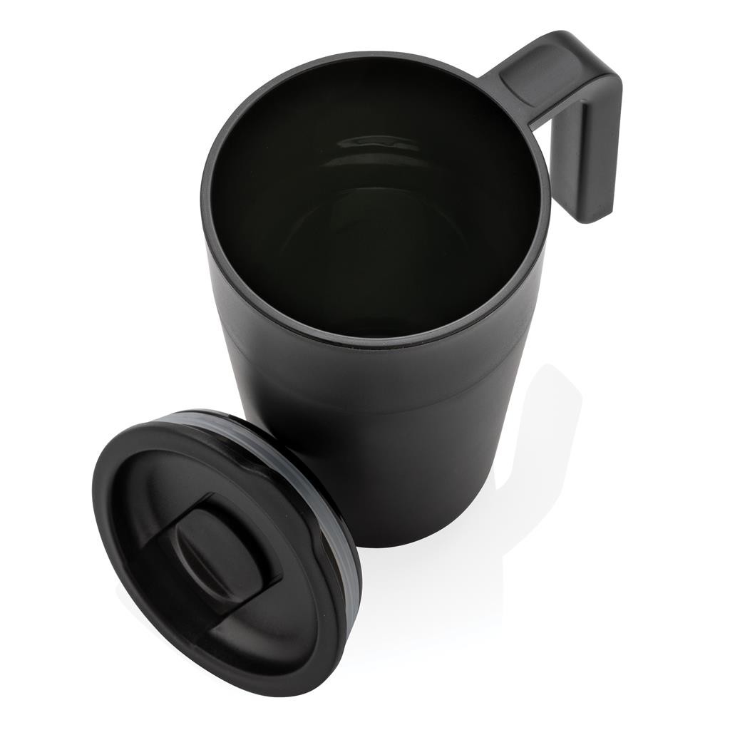 Termohrnek s víčkem se zasunovacím systémem pro snadné pití. Ideální na cesty do práce nebo dopřávání si oblíbeného nápoje v práci. Vyrobeno z GRS recyklovaného PP plastu (vnitřní stěna, víčko a madlo) a GRS recyklované nerezavějící oceli. GRS (global recycled standard) zaručuje kompletně certifikovaný dodavatelský řetězec, čímž lze garantovat skutečné obsažení recyklátu. Podíl použitého recyklovaného materiálu vzhledem k celkové váze produktu: 60 %. Bez BPA. Objem: 480 ml. Baleno v FSC kraftové krabičce.