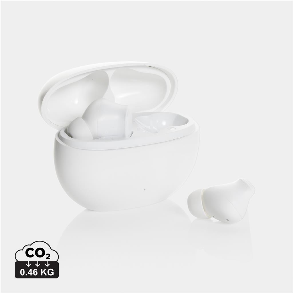 Hybridní sluchátka s ANC a ENC režimy. ANC (23 dB) tlumí okolní ruch a zajišťuje tak ničím nerušený poslech. ENC filtruje externí zvuky při hovorech a zvyšuje tak kvalitu hlasu uživatele. 30 mAh baterie ve sluchátkách pro poslech po dobu až 5h (s ANC) a až 7h (bez ANC) na jedno nabití. Plné nabití za 1,5h v nabíjecí krabičce s 200 mAh baterií. BT 5.3 pro čisté bezdrátové připojení na vzdálenost až 10m zároveň umožňuje automatické párování sluchátek. Sluchátka i krabička jsou vyrobena z RCS recyklovaného ABS. Celkový podíl recyklátu podle váhy produktu: 66 %. RCS certifikace zajišťuje garanci použití recyklovaného materiálu díky transparentnímu přehledu nad dodavatelským řetězcem. Včetně 3 náhradních velikostí nástavců do uší.