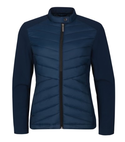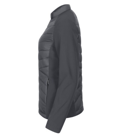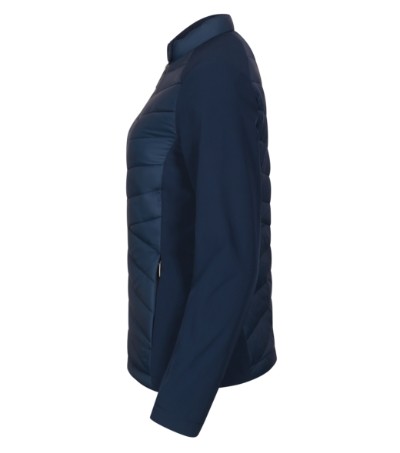 kombinace prošívaného a softshellového materiálu, střih tvarovaný bočními díly, stojáčkový límec na knoflík, celopropínací spirálový zip, boční kapsy se spirálovým zipem, vnitřní náprsní kapsa na zip, vstup pro branding v podšívce Plátnová vazba: 100% polyamid, voděodolná úprava výplň: 100% polyester Softshell: 90% polyester, 10% elastan, voděodolná úprava Podšívka: 100% polyester