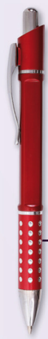 Kuličkové pero s plastovým tělem a kovovým klipem. Šíře stopy 0,7 mm. náplň velkoobsahová