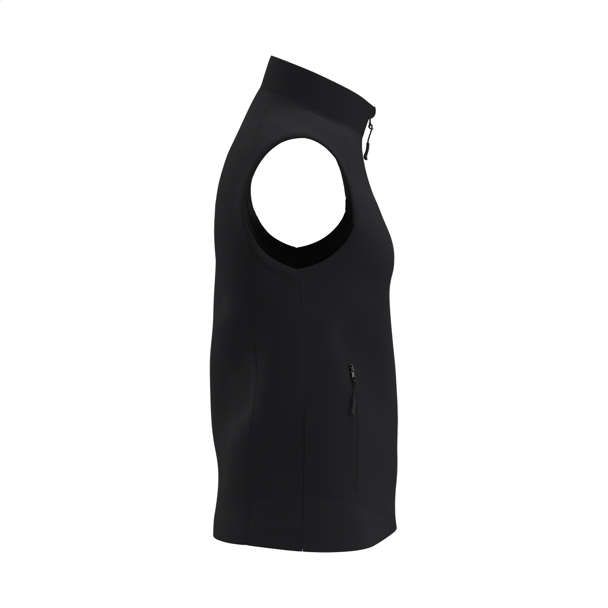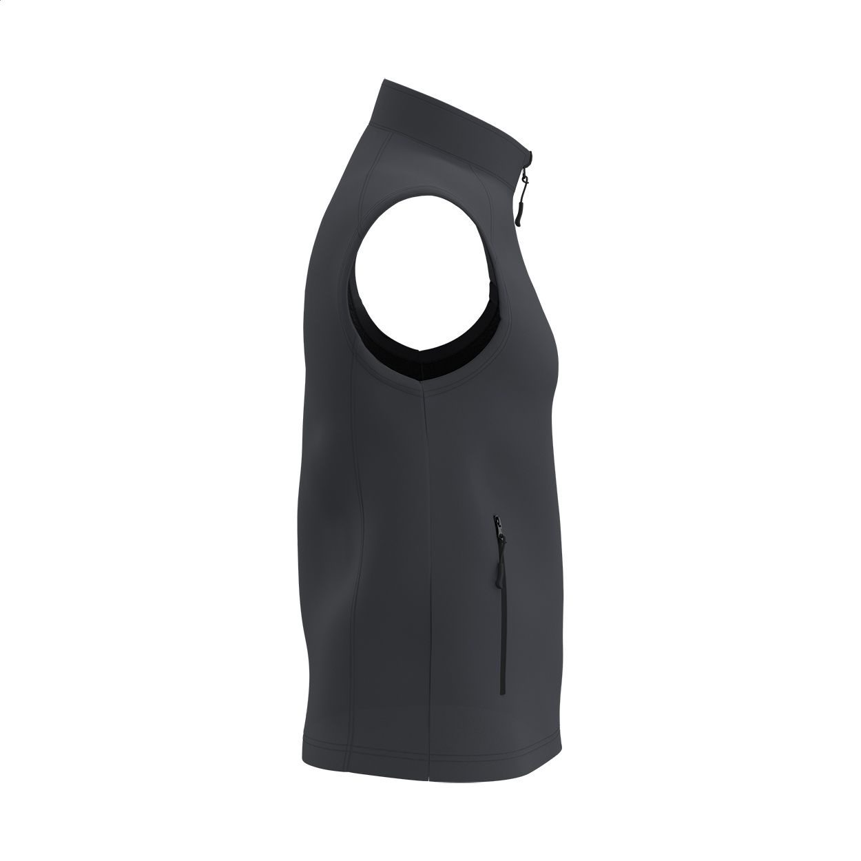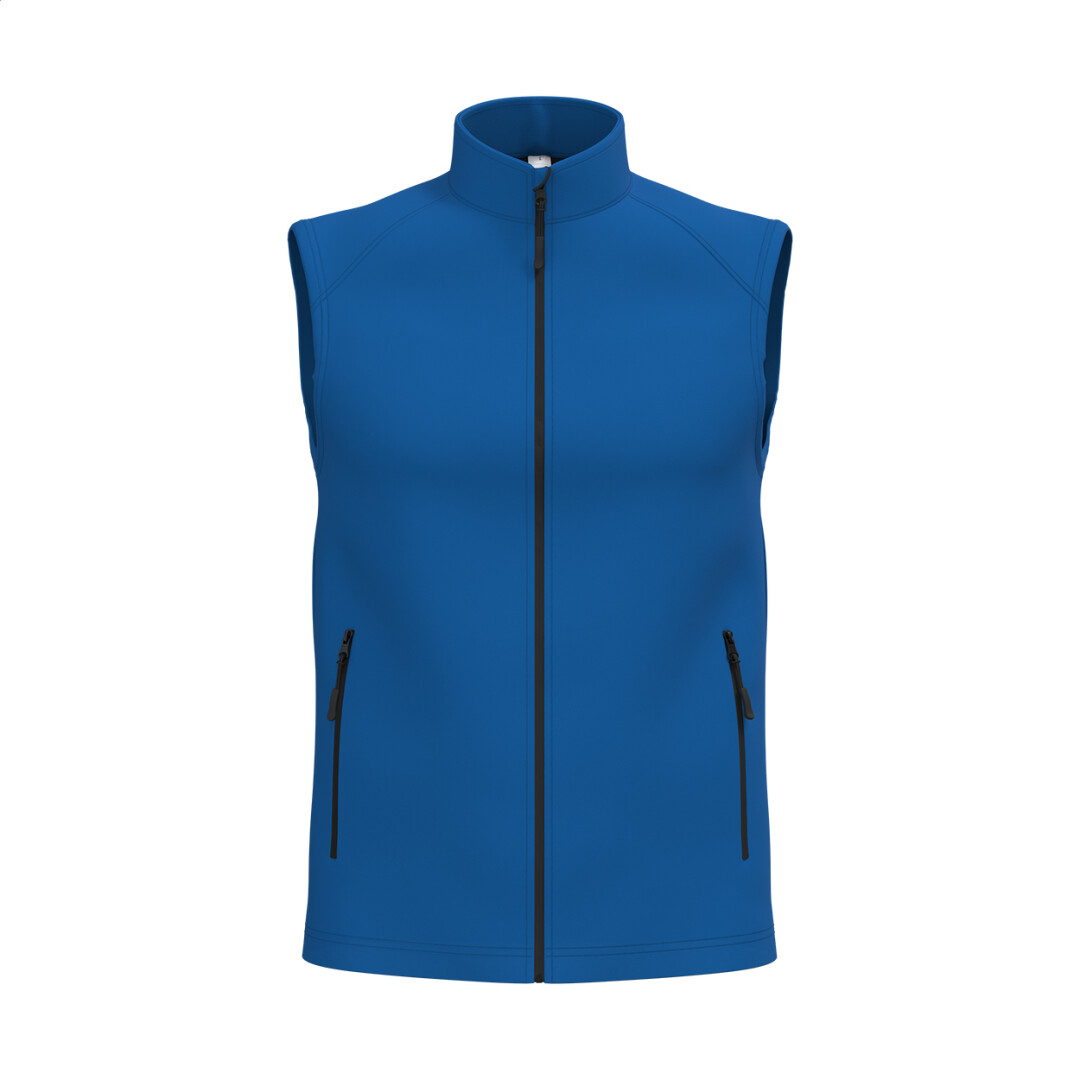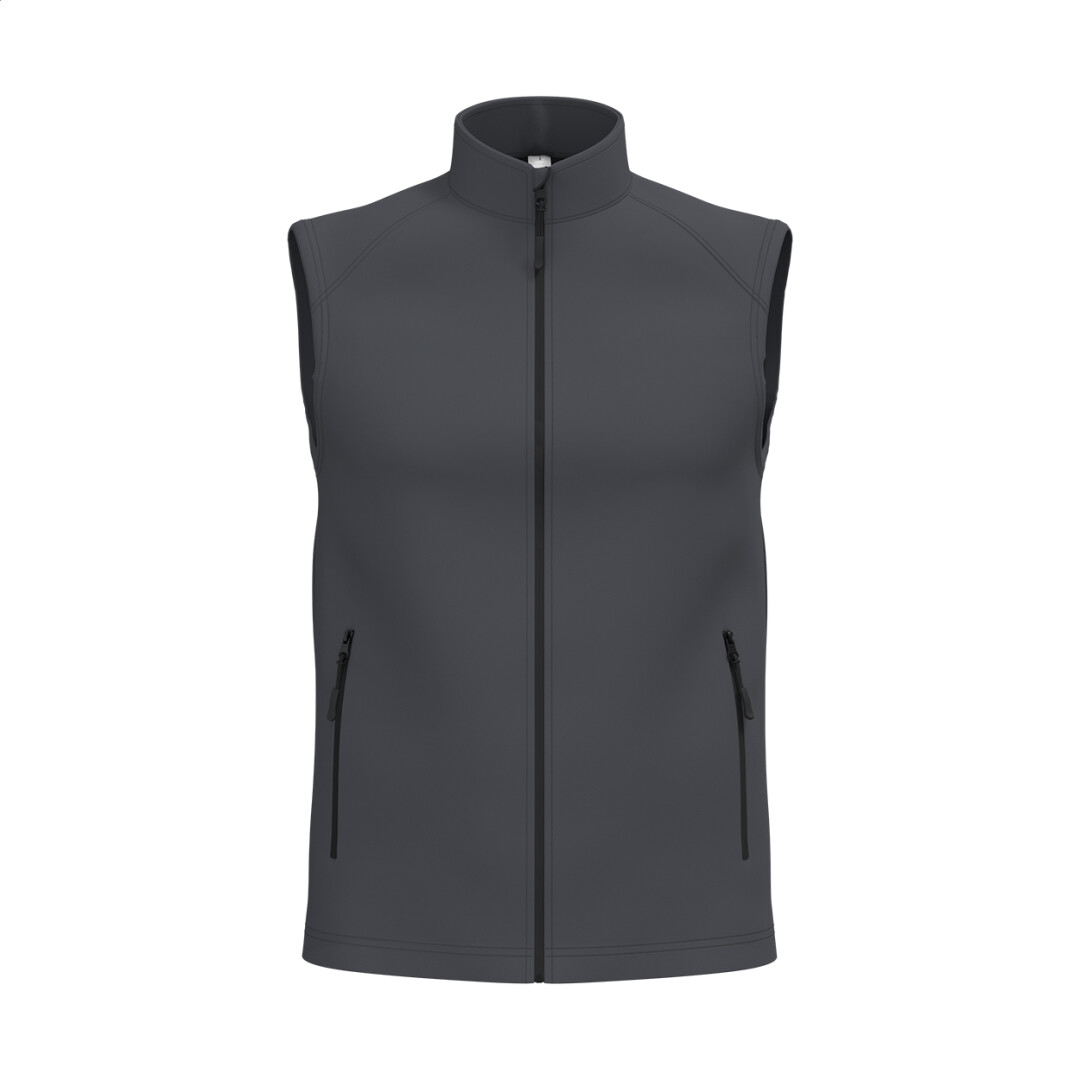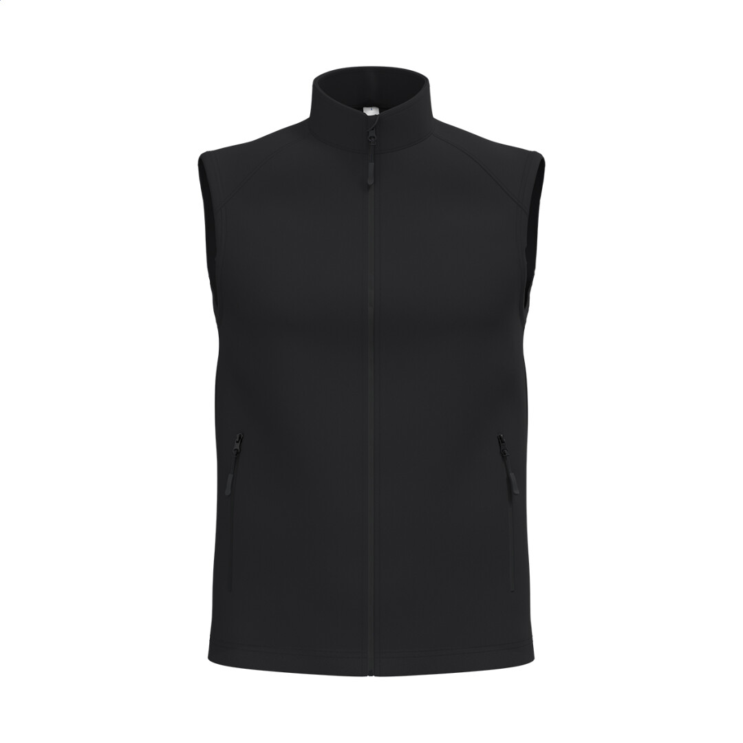 Dvouvrstvá softshellová vesta se zapínáním na zip a bočními kapsami na zip. S kontrastními zipy. Voděodolná tkanina. Vnější strana: 95% polyester a 5% elastan. Vnitřní strana: 100% polyesterový mikro polar fleece. Značka iDealBasic. New