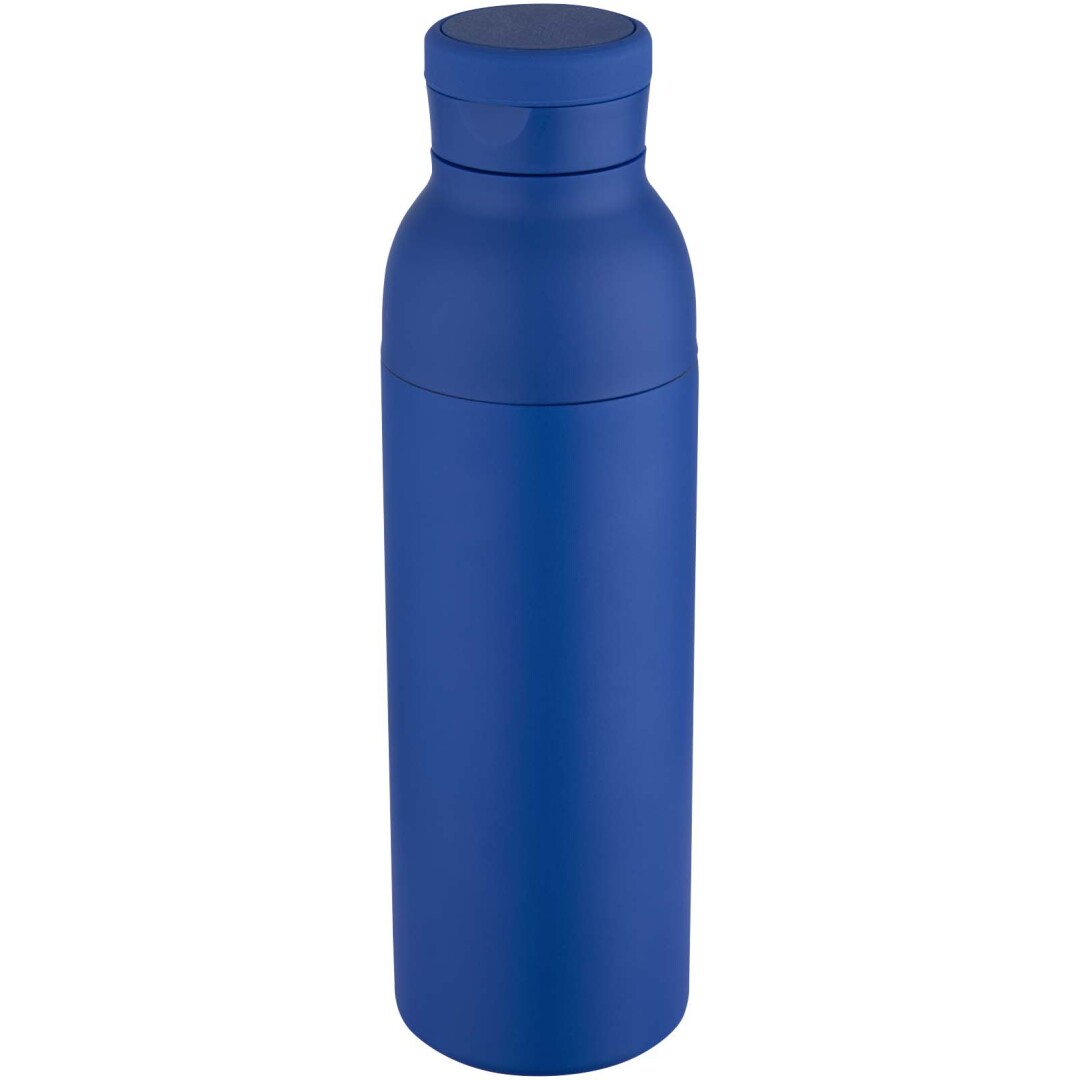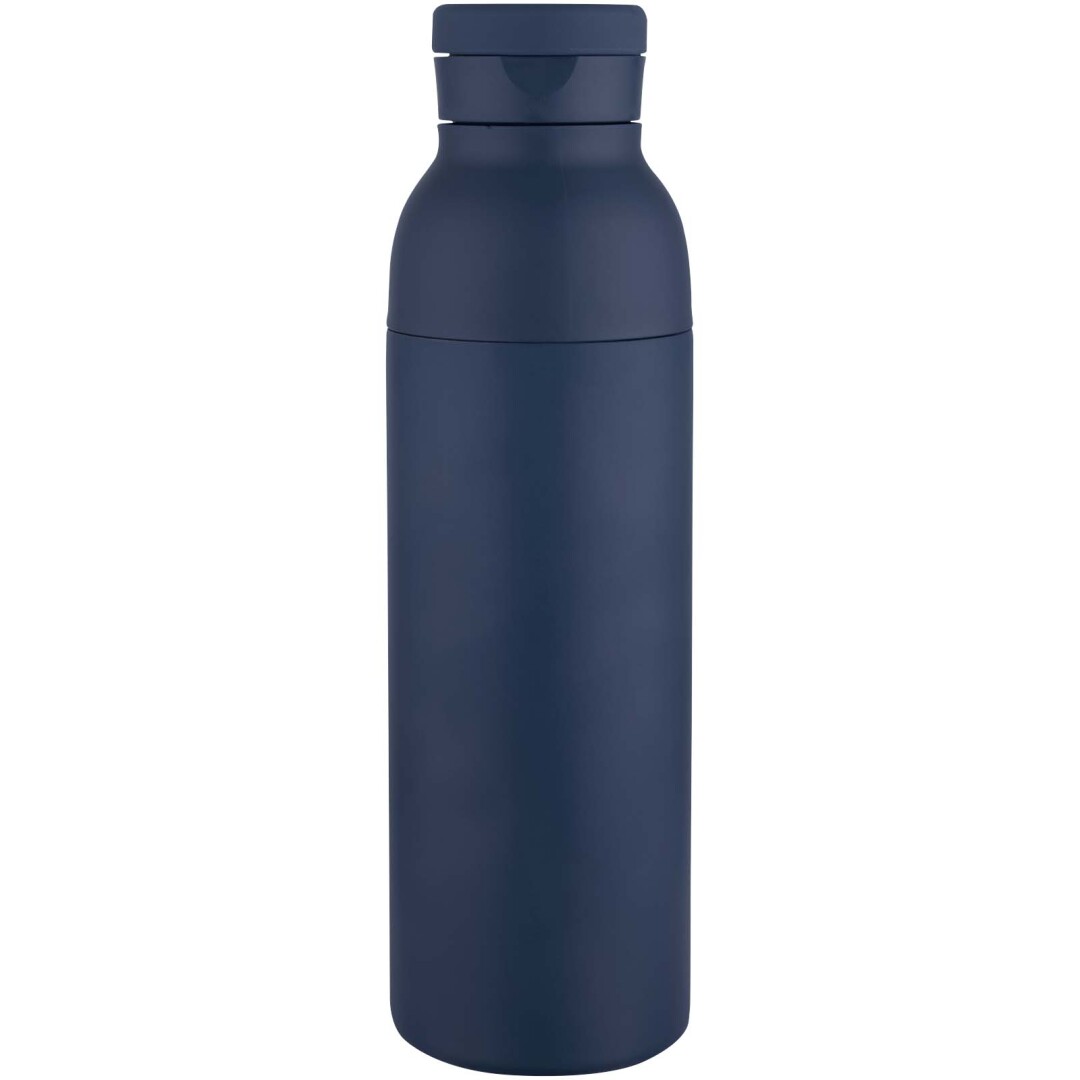 Dvoustěnná, vakuově izolovaná láhev na vodu z nerezové oceli s certifikací RCS s diskrétním silikonovým uchem zabudovaným ve víčku. Dvoudílná konstrukce usnadňuje čištění, zatímco odolný práškový lak a měděné pokovení zajišťují dlouhou životnost. Dodává se v dárkové krabičce z recyklované lepenky. Objemová kapacita: 650 ml.
