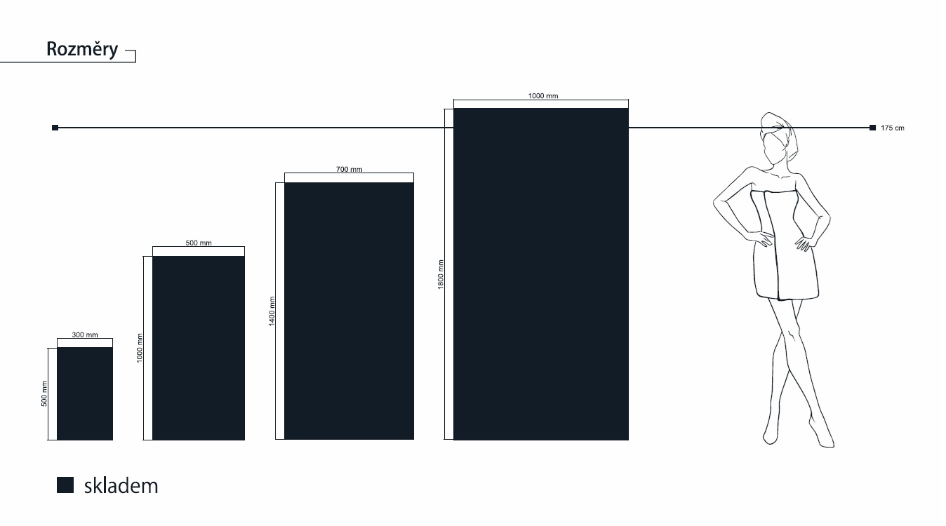 Velikost: 30 x 50 cm, 50 x 100 cm, 70 x 140 cm, 95 x 180 cm