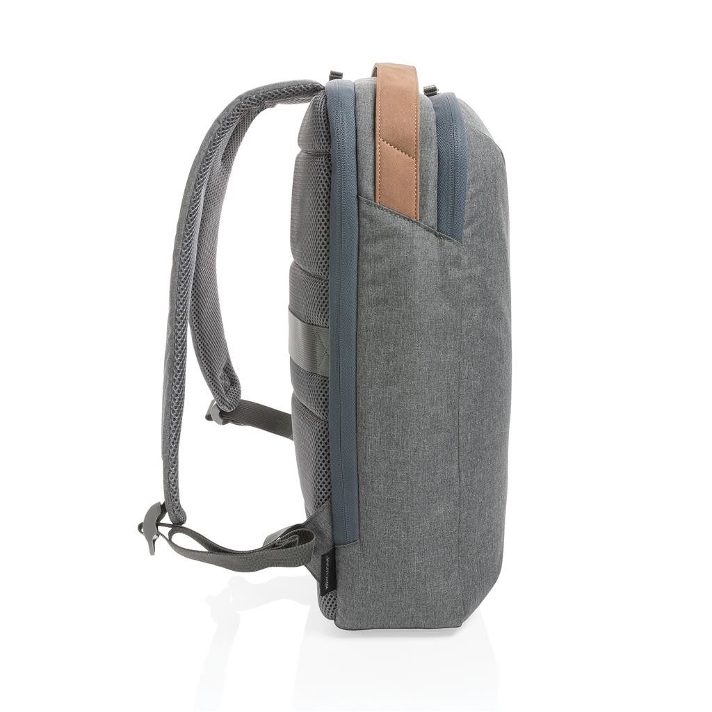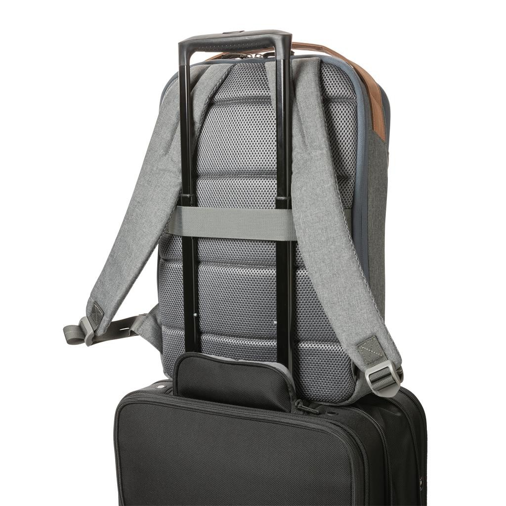 Praktický batoh do kanceláře i mimo ni, jehož eleganci podtrhuje moderní minimalistický design. Hlavní oddíl s prostorem pro až 15,6" notebook a 2 otevřenými přihrádkami na drobnosti. Vrchní ucho z PU, polstrované popruhy i zadní část pro pohodlné nošení. Vnější i vnitřní části jsou vyrobené z recyklovaného polyesteru. Včetně skenovatelné složky AWARE™ garantující obsah recyklátu. Na výrobu bylo využito 9,01 500ml PET lahví a bylo uspořeno 5,4 litrů vody. Z výtěžku každého prodaného produktu z kolekce Impact je navíc přispěno 2 % na podporu iniciativy Water.org.
