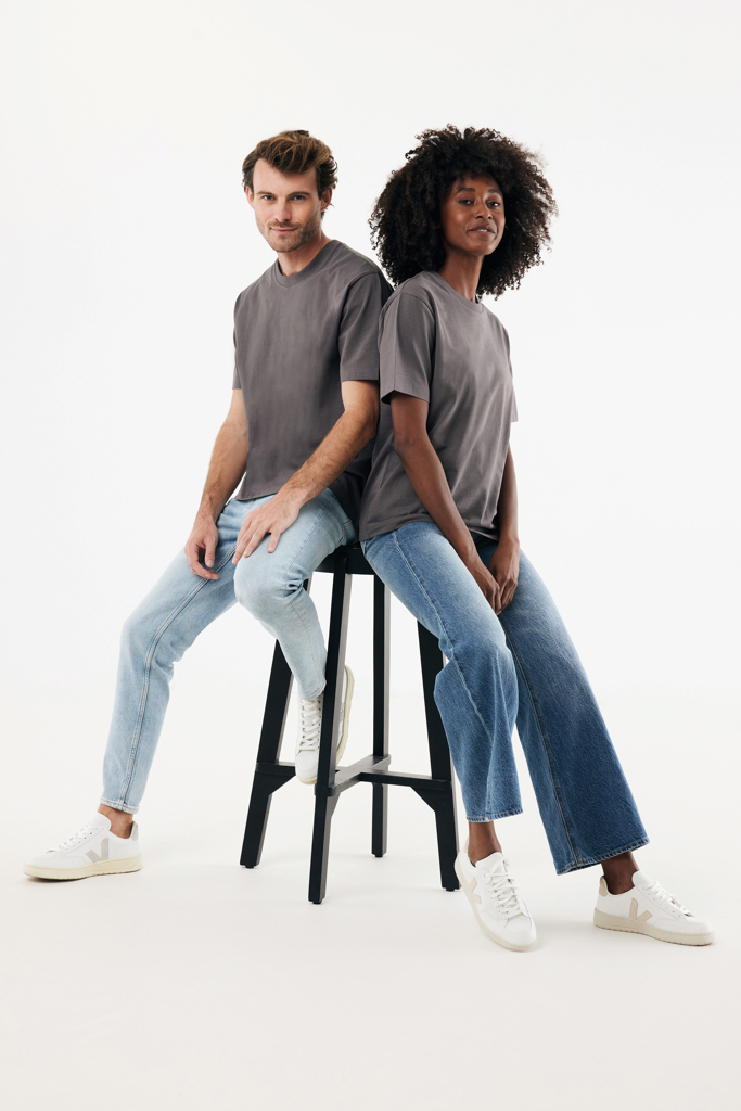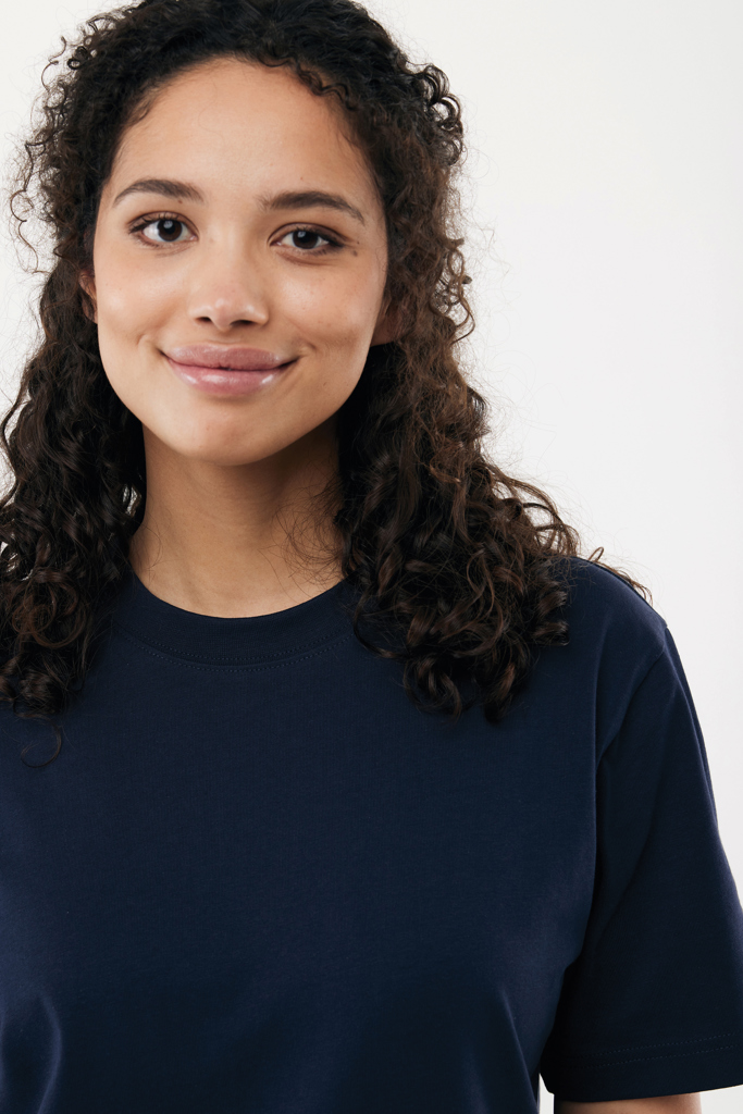 Unisex tričko moderního střihu vyrobené ze 100% bavlny, z toho 50% recyklované a 50% organické, s gramáží 220 g/m². Tričko má klasický kulatý výstřih s žebrováním 1x1. Použití pravých recyklovaných a organických materiálů a tvrzení o environmentálním vlivu jsou garantovány technologií AWARE™ s fyzickým identifikátorem a technologií blockchain. Naskenováním QR kódu získáte přístup k digitálnímu pasu produktu. 2% z výtěžku z každého prodaného kusu jsou věnovány organizaci Water.org. Produkt je certifikován podle OEKO-TEX® STANDARD 100 Centexbel. Vzhledem k povaze recyklovaných přízí se mohou vyskytnout drobné nečistoty a barevné odchylky.