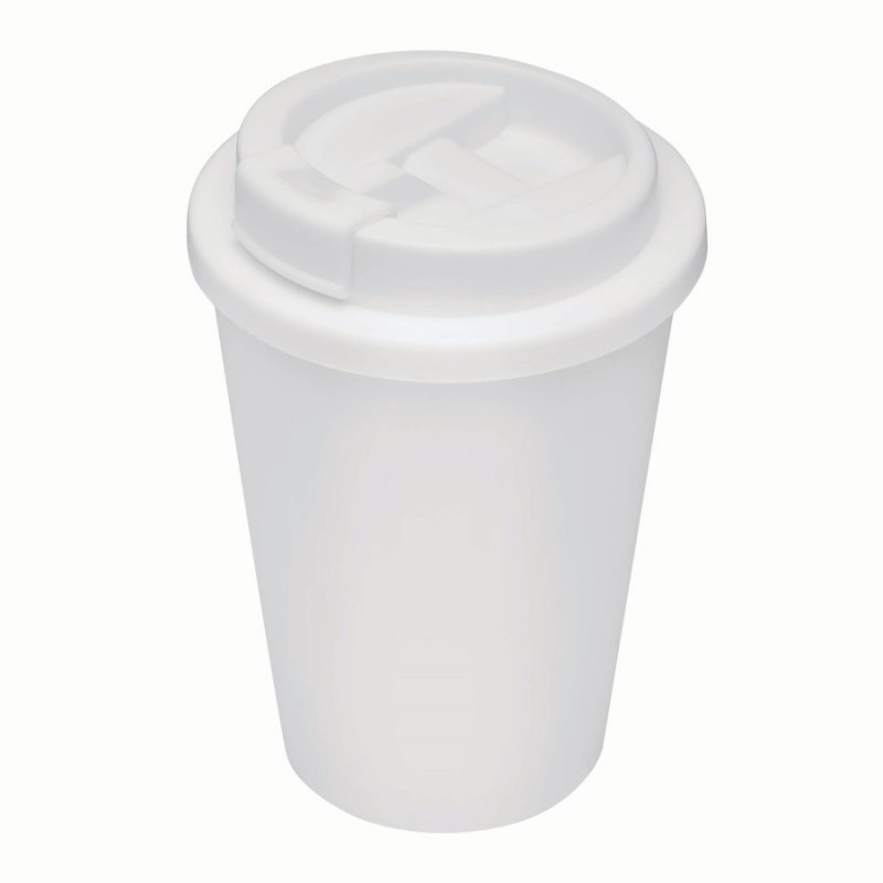 Izolovaný pohár RE-USE, dvoustěnný: bezpečný šroubovací uzávěr se silikonovým těsněním a integrovaným otvorem pro pití, který lze složit, recyklovaný materiál, kapacita cca. 300 ml, udrží teplo až 2 hodiny a studené až 4 hodiny.