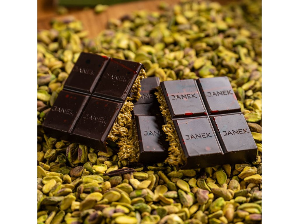 Exkluzivní hořká čokoláda plněná pistáciovým krémem, křupavým kadayifem a jemnou kapkou tahini. Inspirovaná Dubajem, potěší všechny, kteří milují výrazné chutě a netradiční spojení. Obsahuje lepek. Složení: hořká čokoláda (kakaová hmota 64 %, kakaové máslo, cukr, sójový lecitin, přírodní vanilka), pistáciová pasta, knafeh (pšeničná mouka, pšeničný škrob, sůl, sójový lecitin, slunečnicový olej, sorban draselný, voda (E141, E100, E163). Váha: 200 g