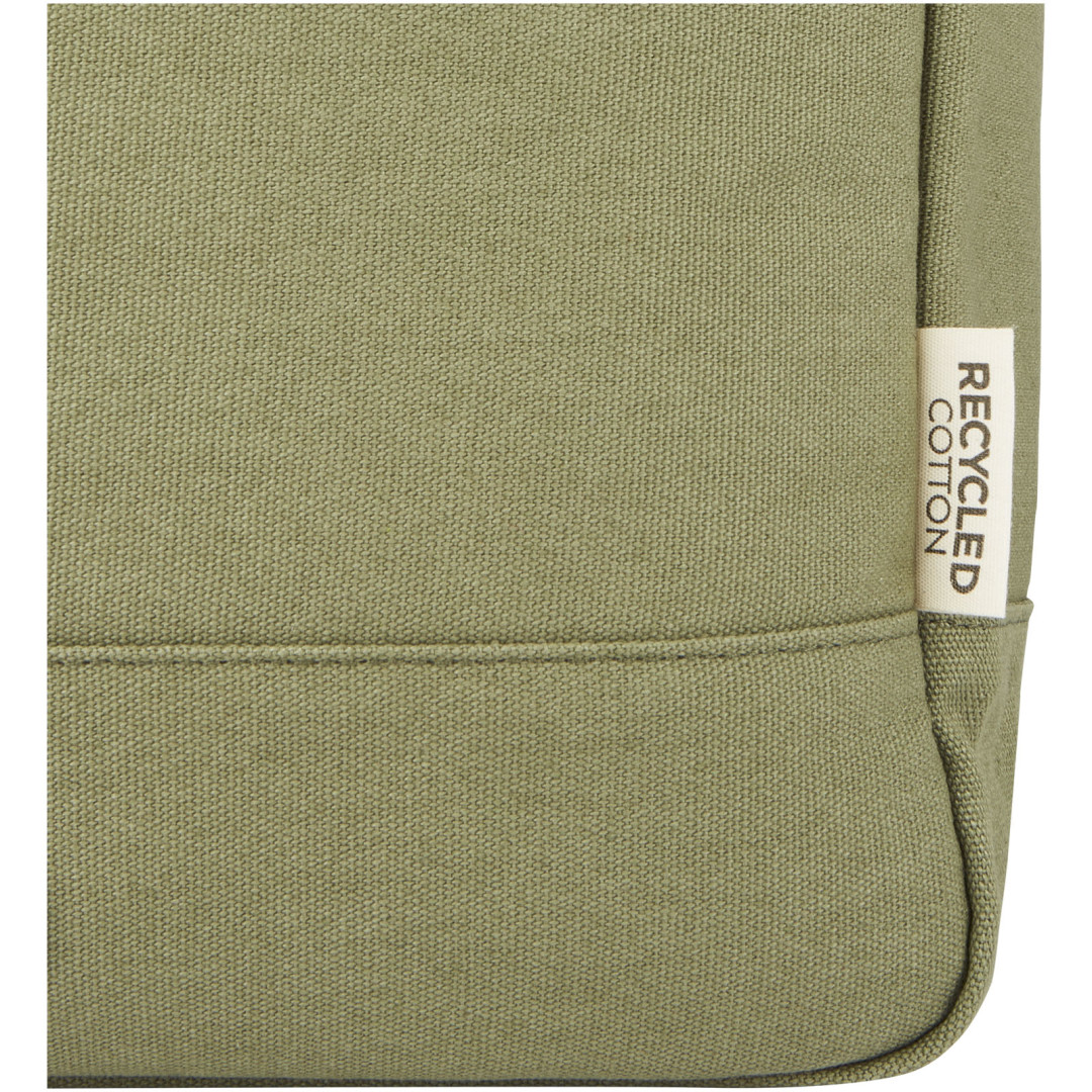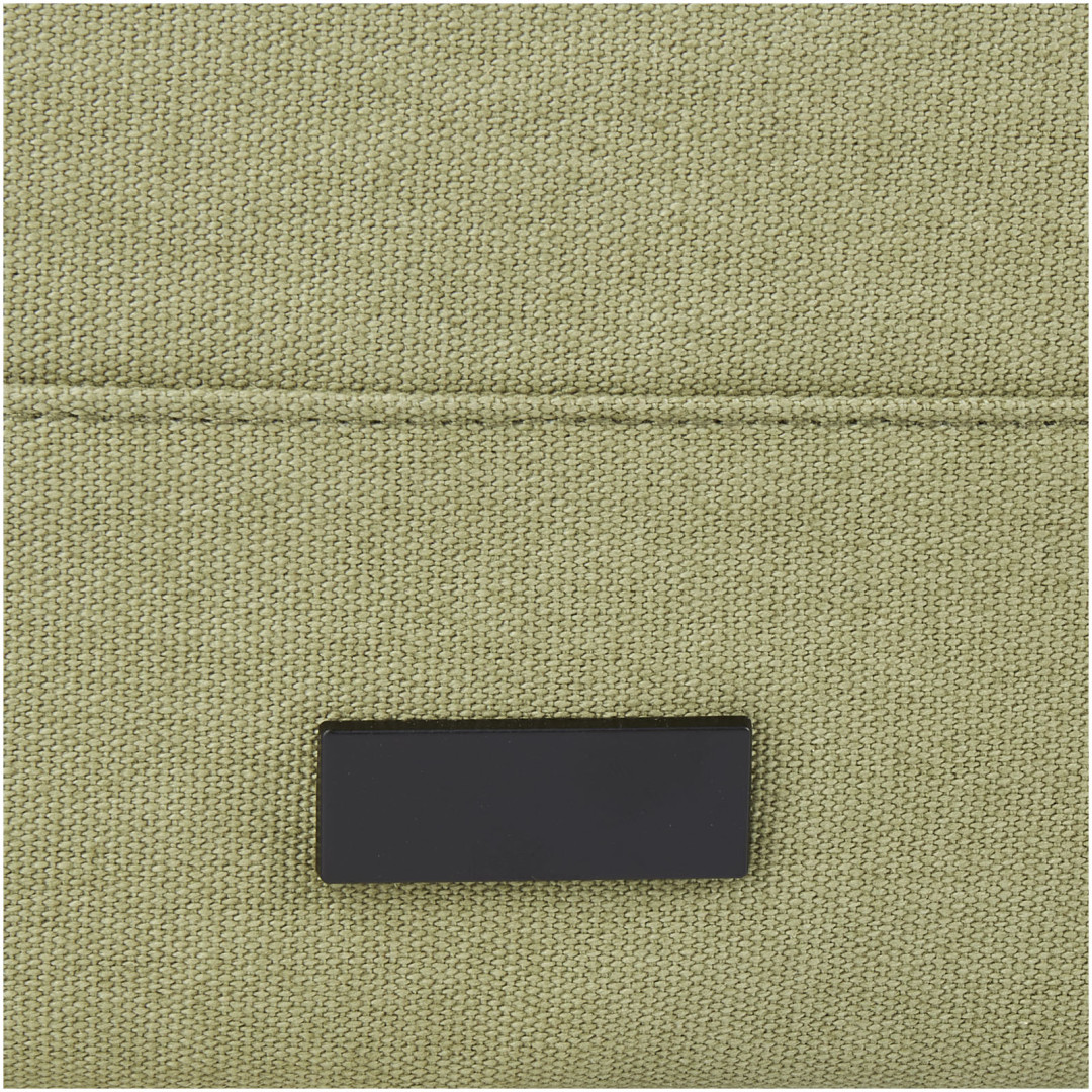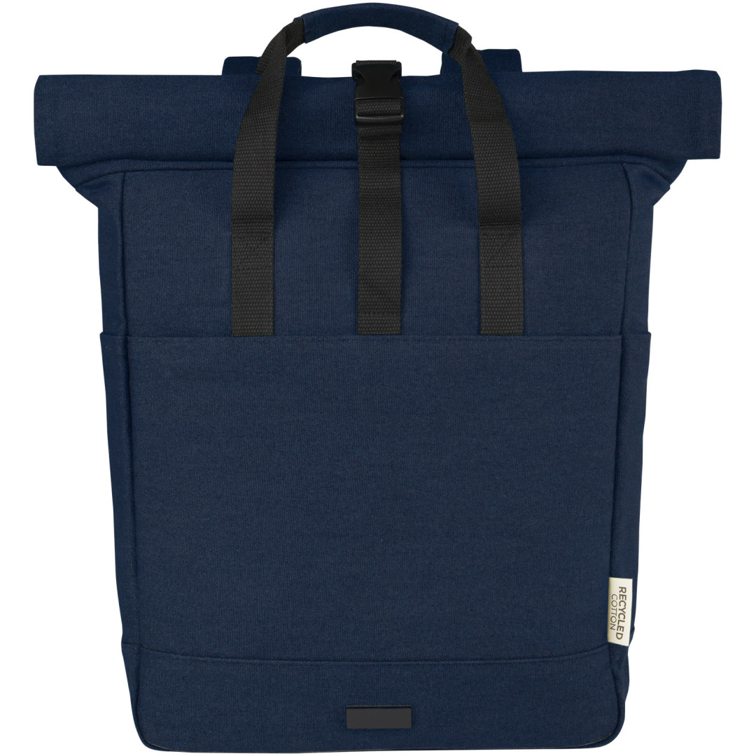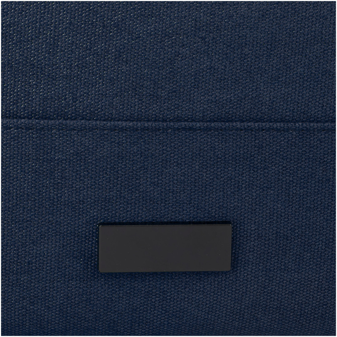 Batoh Joey inspirovaný maloobchodem je vyroben z vysoce odolných a udržitelných materiálů, recyklovaného plátna GRS a podšívky GRS RPET. Může se pochlubit speciálním pouzdrem na tablet spolu s polstrovanou přihrádkou na 15" notebook. Batoh má také 2 boční kapsy na vodu a jednu velkou přední kapsu na zip a také rolovací otvor na zip pro maximální skladování a bezpečnost. Díky 2 vyztuženým popruhovým držadlům se snadno a pohodlně přenáší jako firemní taška. Díky dekorativní kovové desce vynikne logo s jemným a matným povrchem.