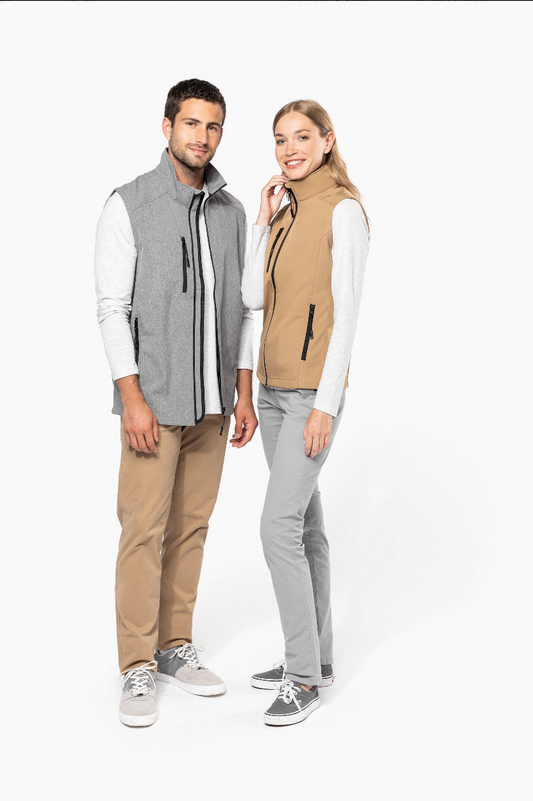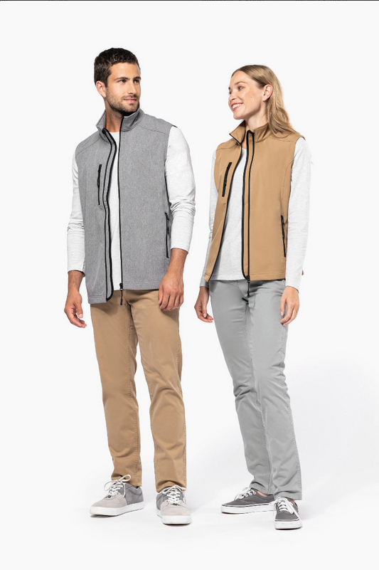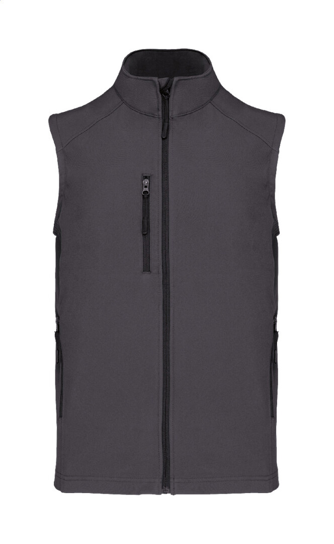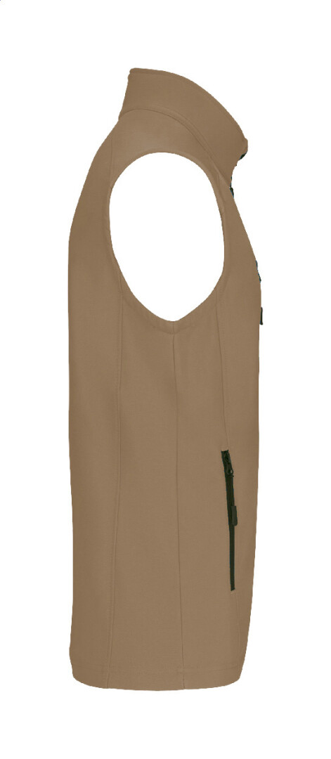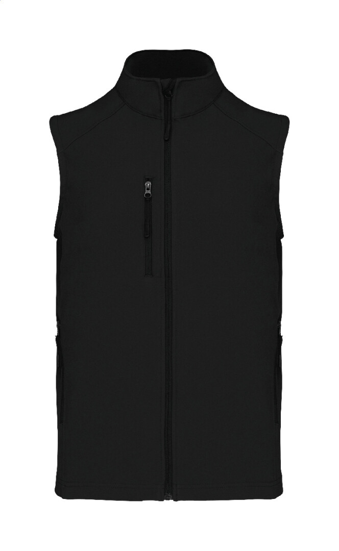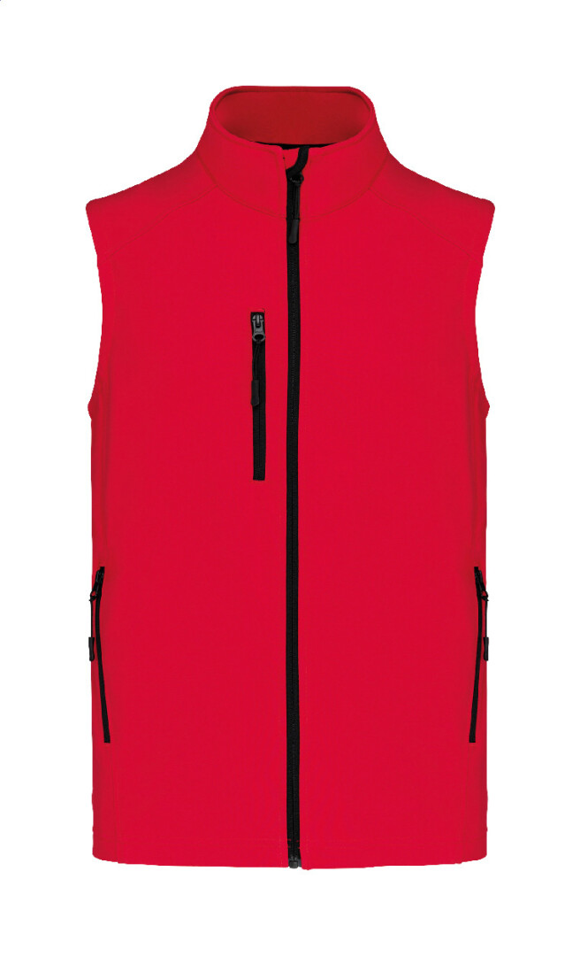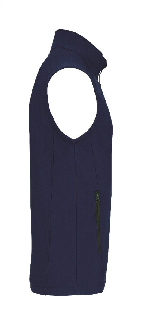Třívrstvá, prodyšná, větru a voděodolná softshellová vesta na tělo s náprsními a bočními kapsami na zip. S prodyšnou střední vrstvou a vnitřní vrstvou z micro polar fleecu. Materiál: 95% polyester a 5% elastan, 300 g/m². Výrobek značky Kariban. New