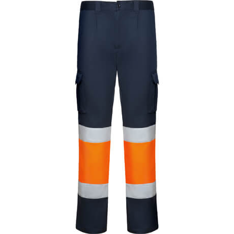 Dlouhé reflexní kontrastní kalhoty s několika kapsami | Pohodlný a pružný materiál | Elastický pas vzadu | Dvě přední kapsy | Dvě zadní kapsy s klopou a zapínáním na suchý zip | Dvě boční kapsy se sklady, patkou a zapínáním na suchý zip | Certifikováno podle EN ISO 13688:2013 a EN ISO 20471:2013/A1:2016 třída I