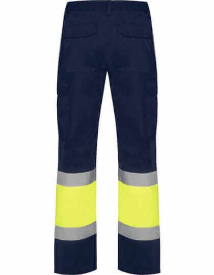 Reflexní kalhoty na léto s několika kapsami | Pas s elastickou vsadkou vzadu | Dvě zadní kapsy s klopou a zapínáním na suchý zip | Dvě přední kapsy a dvě boční kapsy s klopou a zapínáním na suchý zip | Dvoubarevné s reflexním páskem | Certifikováno podle norem CE: EN ISO 13688:2013 a EN ISO 20471:2013/A1:2016, třída I | Výrobce garantuje reflexní vlastnost podle normy EN pro 25 pracích cyklů do 30 °C