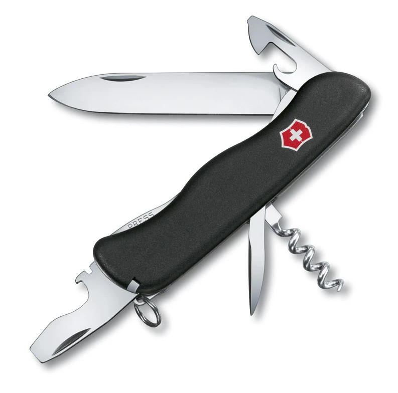 Kapesní nůž obsahuje: 1. velká uzavírací čepel 2. vývrtka 3. otvírák na konzervy se 4. - malým šroubovákem (i na křížové šrouby) 5. otvírák na láhve se 6. - šroubovákem 7. - odstraňovačem izolace drátů 8. děrovač, 9. nerezový kroužek na klíče 10. pinzeta 11. párátko