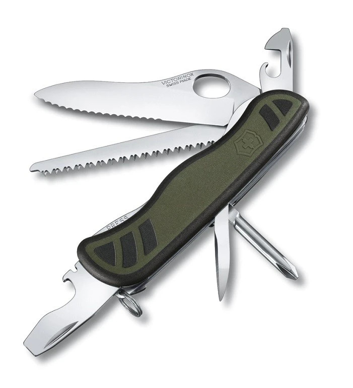 Kapesní nůž obsahuje: 1. velká zoubkovaná uzavírací čepel s okem pro jednoruční otevírání 2. křížový šroubovák 3. otvírák na konzervy se 4. - malým šroubovákem (i na křížové šrouby) 5. otvírák na láhve se 6. - šroubovákem 7. - odstraň izolace drátů 8. děrovač, výstružník 9. nerezový kroužek na klíče 10. pilka na dřevo