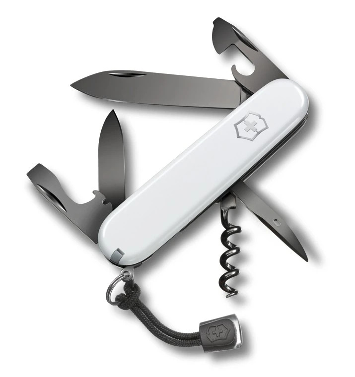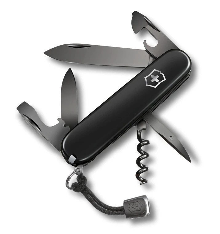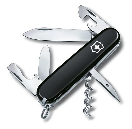 Kapesní nůž obsahuje: 1. uzavírací čepel velká 2. uzavírací čepel malá 3. vývrtka 4. otvírák na konzervy s 5. - malým šroubovákem (i na křížové šrouby) 6. otvírák na láhve se 7. - šroubovákem 8. - odstraňovačem i 9. děrovač, výstružník 10. nerezový kroužek na klíče 11. pinzeta 12. párátko