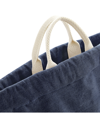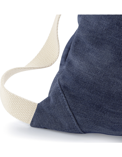 100 % měkká bavlněná džínovina | Odtrhávací štítek pro snadnou změnu designu | Dvouúčelová ucha / závěsná poutka | Uzavírání stahovací šňůrkou | Ramenní popruhy z bavlněné popruhoviny | Lze nosit v ruce nebo jako batoh | Dodávka bez obsahu/dekorace | Kapacita: 12 litrů.