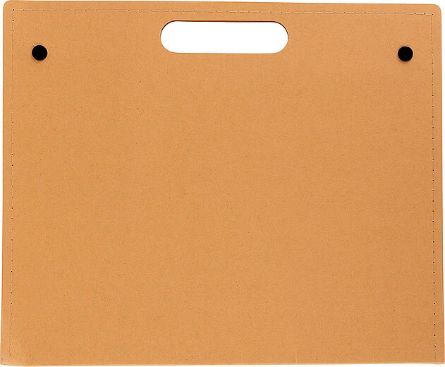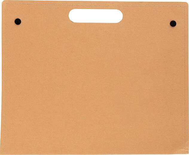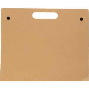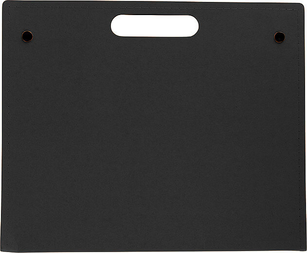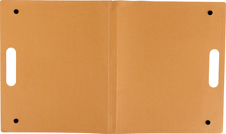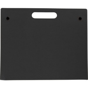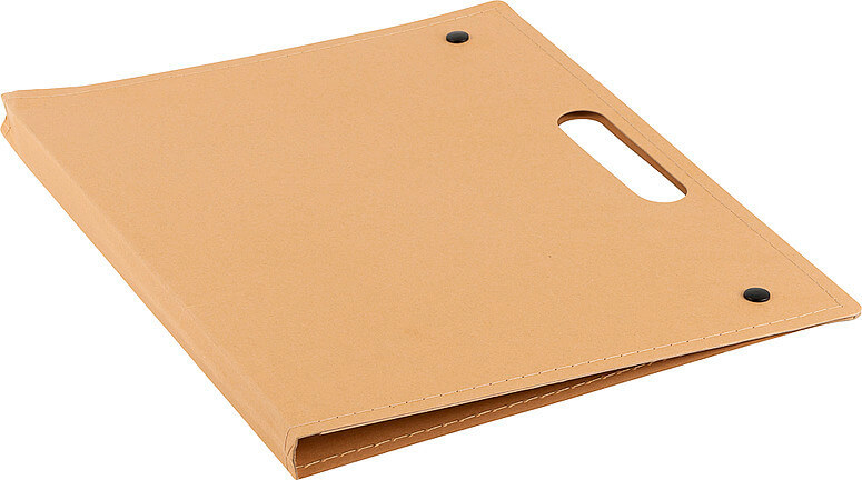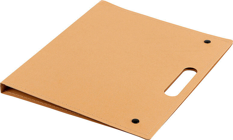 Kartonová složka na psaní s 20 listovým poznámkovým blokem (přibližně A4), kartonové pero s černým inkoustem a lepicí poznámky ve 4 barvách, 25 listů na barvu. Složka má integrovaný popisovač