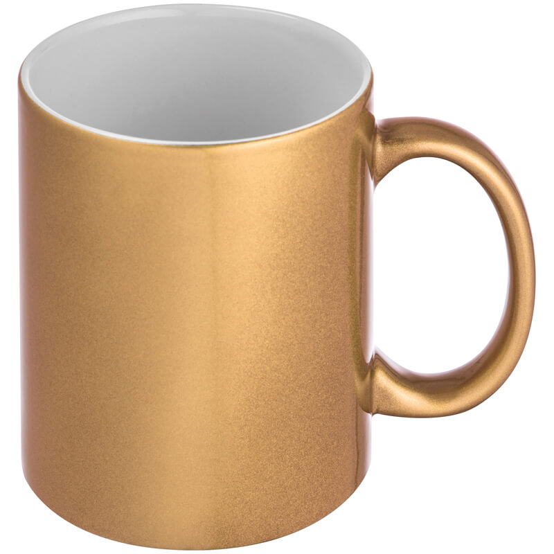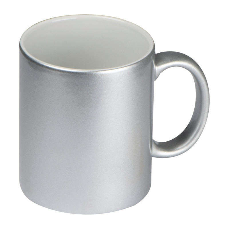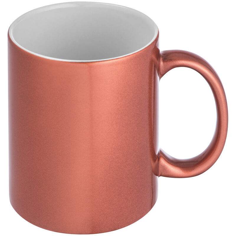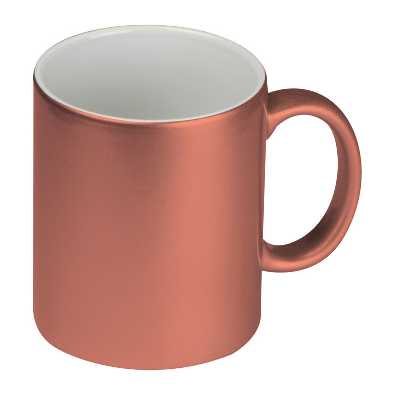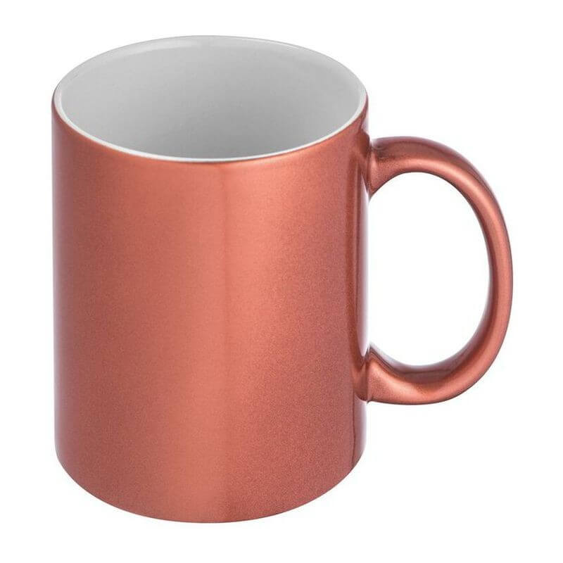 Klasický kávový hrnek s metalickým efektem vnějšího povrchu, s obsahem 300 ml. Na umístění Vašeho loga doporučujeme použít sublimační potisk.