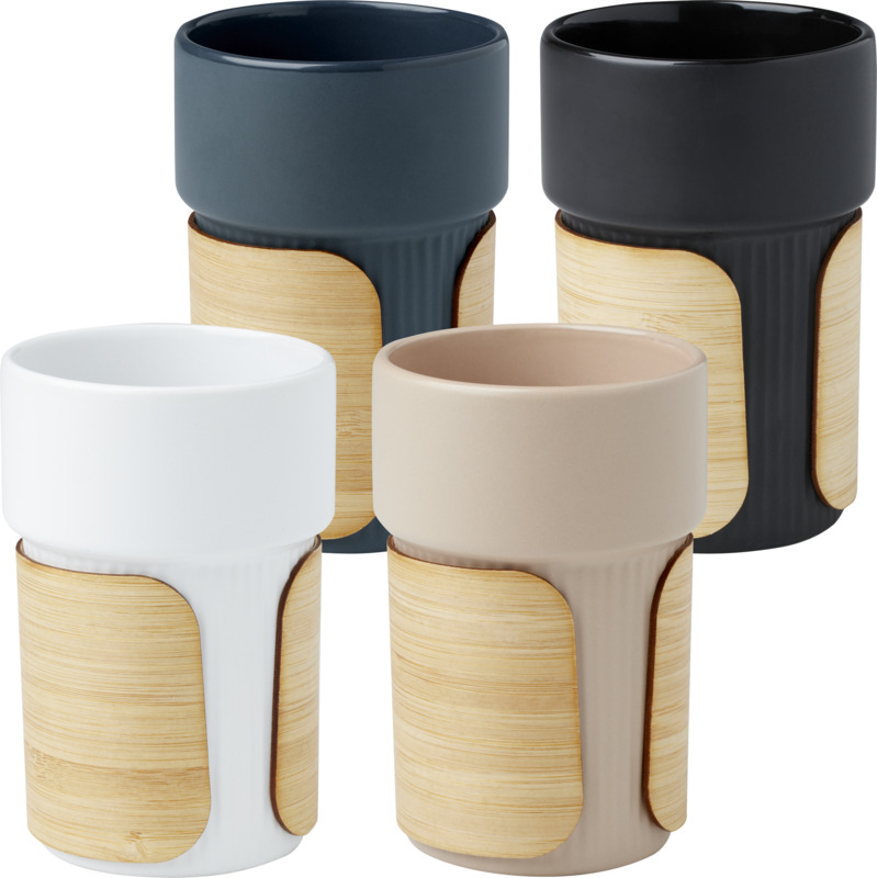 Stylový keramický kelímek Fika je dodáván s odnímatelným bambusovým návlekem, který je ideální pro použití při pití horkých nápojů. Bambus pochází z udržitelných, ekologicky a sociálně zodpovědných zdrojů. Dodává se v dárkové krabičce z recyklované lepenky. Objem: 340 ml