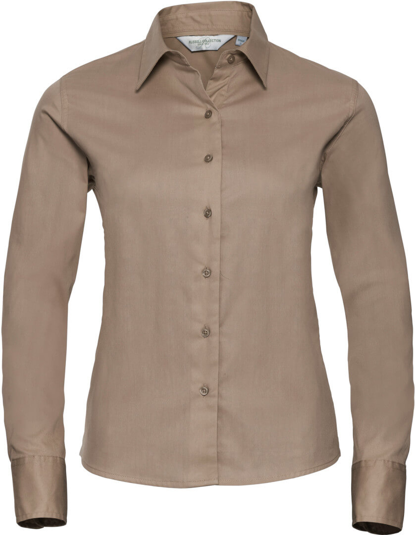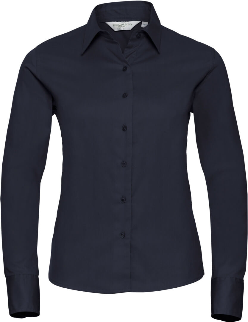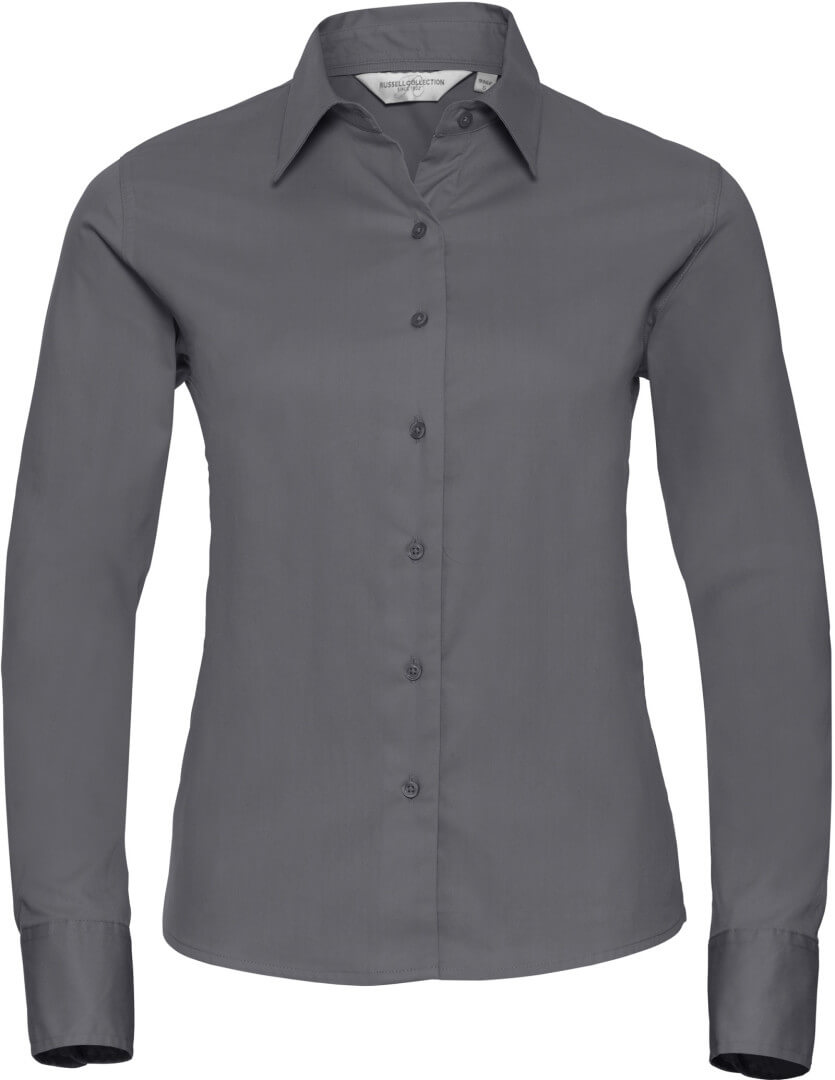 130g/m², 100% bavlna, kepr dámská keprová košile klasického střihu s dlouhým rukávem, zaoblený spodní lem a náhradní knoflíčky, na rukávech jsou zaoblené manžety se dvěma knoflíčky