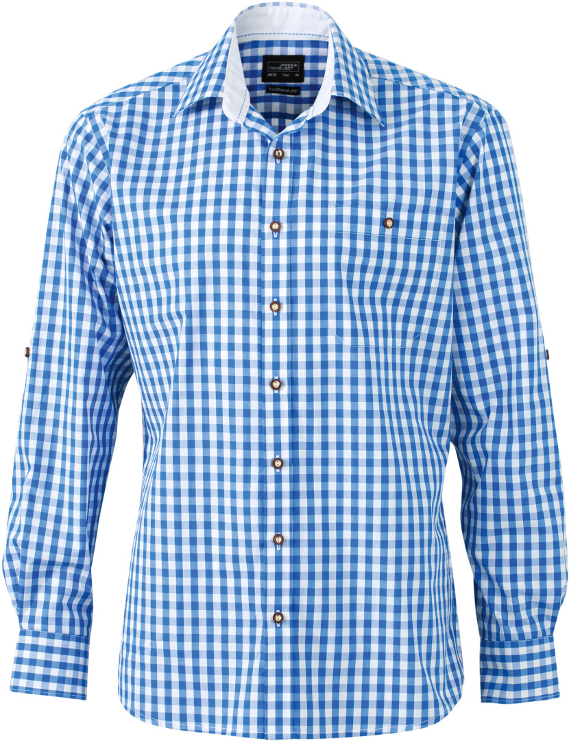 100g/m², 100% bavlna klasický lehce vypasovaný střih, tradičně vypadající knoflíčky vyrobeny z imitace rohoviny, klasický límeček, zaoblený spodní lem, rukávy se dají srolovat a zapnout na knoflíček, vyrobena z kvalitního popelínu, který se snadno udržuje