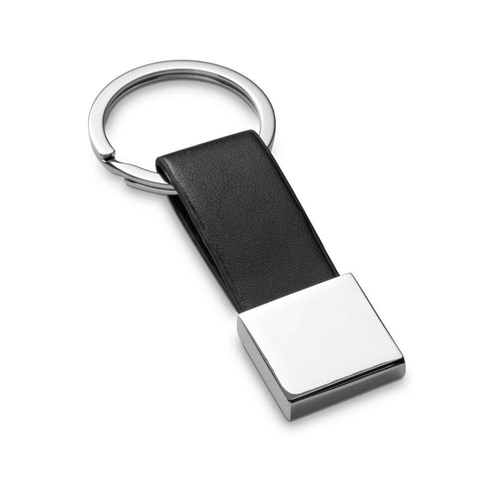 Klíčenka z imitace kůže a kovu. Tato potisknutelná klíčenka se dodává v dárkové krabičce.Potisk: Přívěsek na klíče - Přední (Gravírování laserem - 15 x 15)