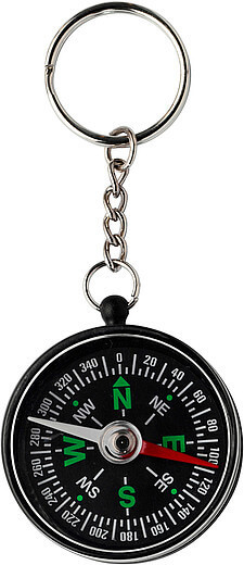 Klíčenka s plastovým kompasem a kovovým kroužkem.