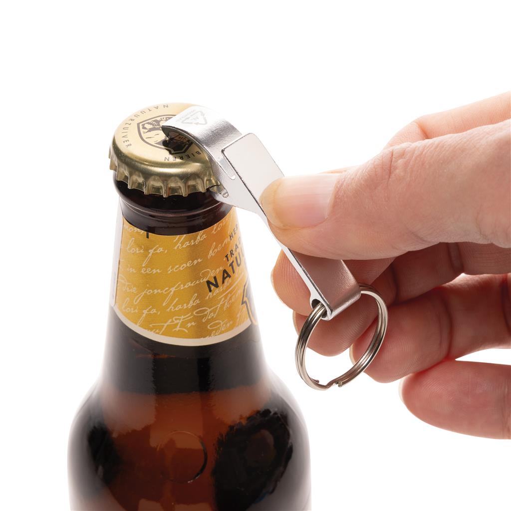 Klíčenka s otvírákem na láhve a plechovky. Vyrobená z RCS recyklovaného hliníku. RCS certifikace zajišťuje garanci použití recyklovaného materiálu díky transparentnímu přehledu nad dodavatelským řetězcem. Celkový podíl recyklátu podle váhy produktu: 79 %. Baleno v papírovém obalu.