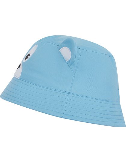 Dětský klobouk typu bucket | Plochý vršek | Prošívaná krempa | Dvě vyšívané postavičky medvěd a zajíček | Elastický zadní díl, která dobře padne ve všech velikostech | Možnost zdobení na krempě a přední straně | Bez štítku pro snadnou změnu značky.