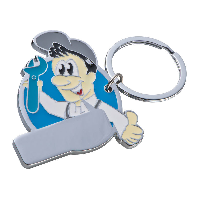 Přívesok na klíče z kovu s barevným lakováním vpredu. Vyberte si z řemesel a povolání, který Vám vyhovuje. Vaše reklama nagravírujeme na určenú část.