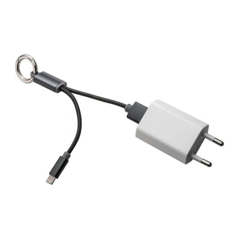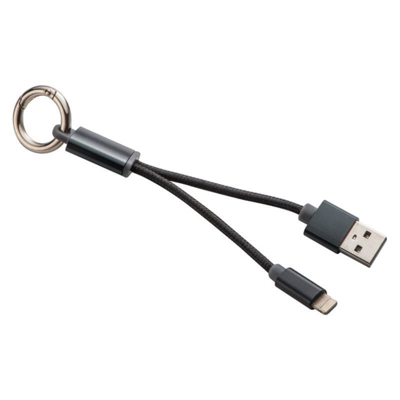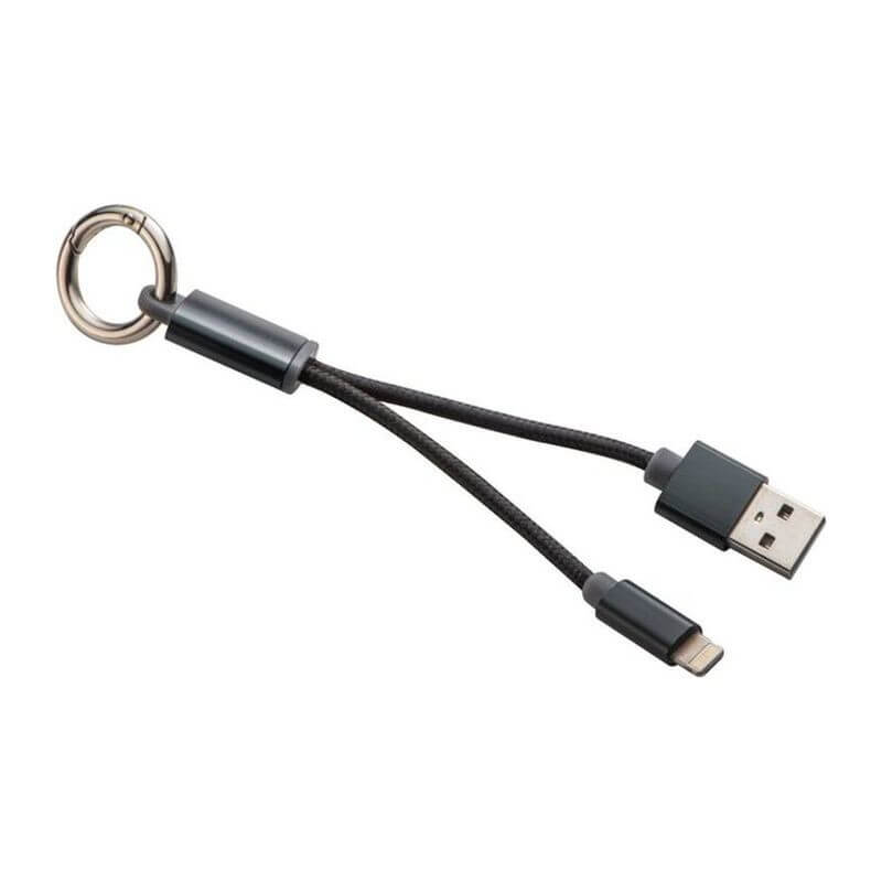 Klíčenka s kabelem pro nabíjení. Vaše logo doporučujeme umístit gravírováním.