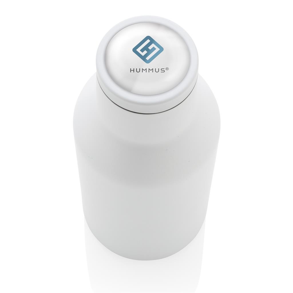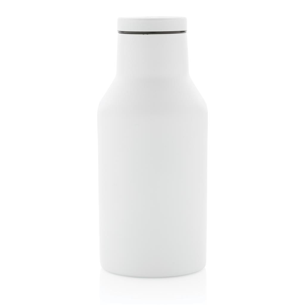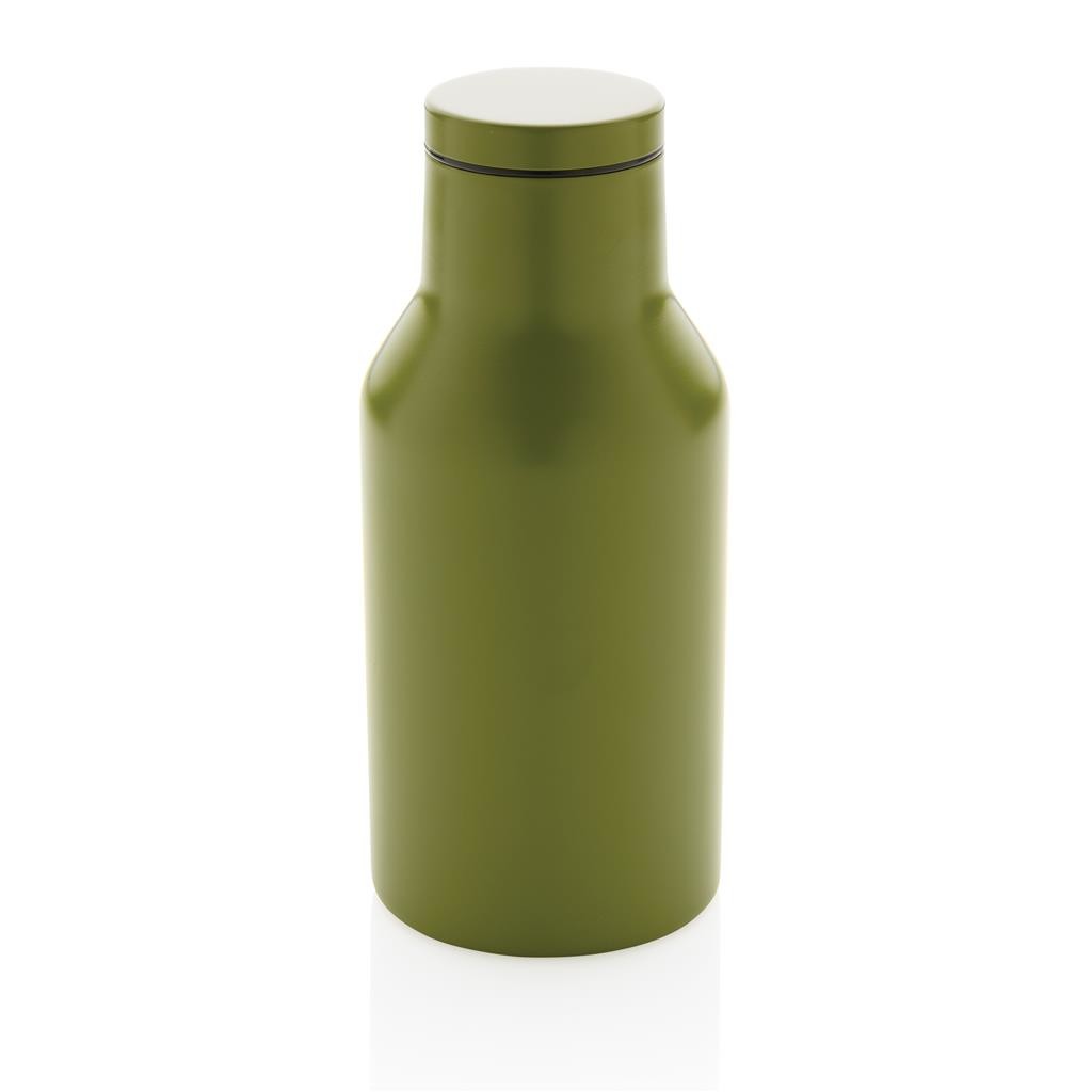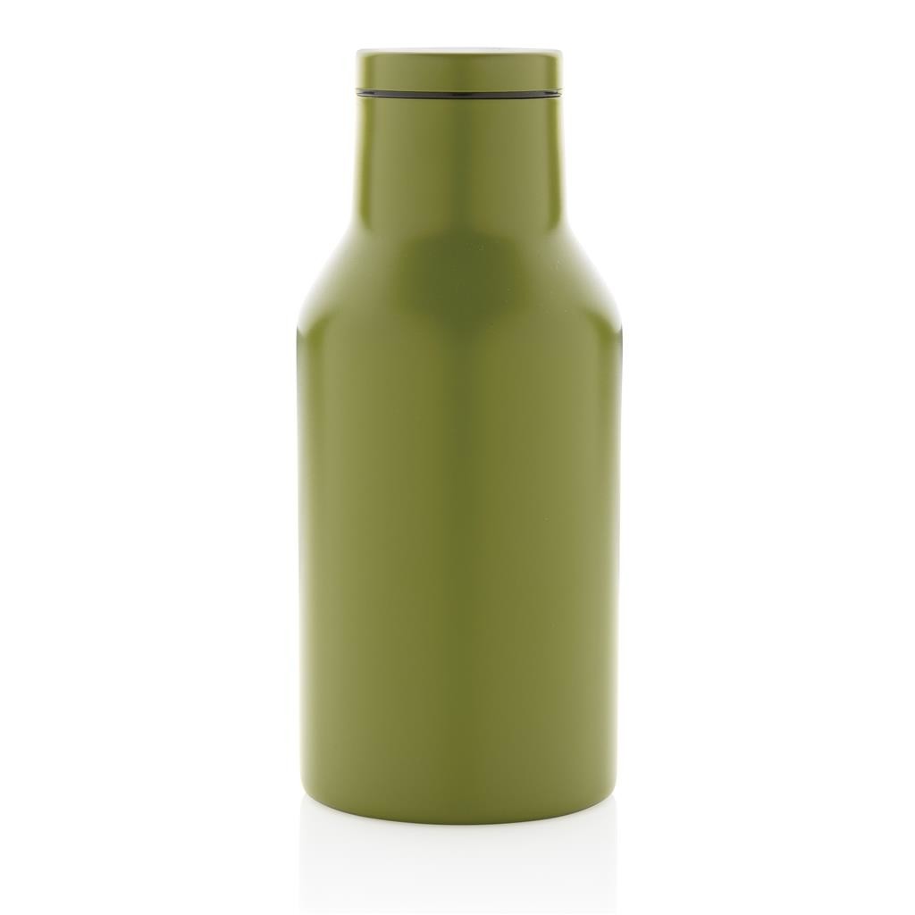 Kompaktní nepropustná termo lahev s bezpečným šroubovacím uzávěrem s širokým hrdlem pro snadné čištění a plnění. Dvoustěnná vakuová izolace uchová nápoj horký po dobu až 3h a studený až 6h. Vyrobeno z RCS recyklované nerezavějící oceli. RCS (Recycled Claim Standard) je globální standard, který umožňuje ověřit použití recyklovaného materiálu v produktu napříč celým dodavatelským řetězcem. Podíl použitého recyklovaného materiálu vzhledem k celkové váze produktu: 89 %. Bez BPA. Objem: 300 ml. Baleno v FSC kraftové krabičce.