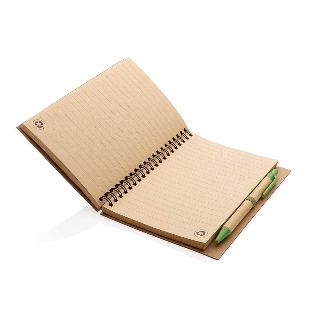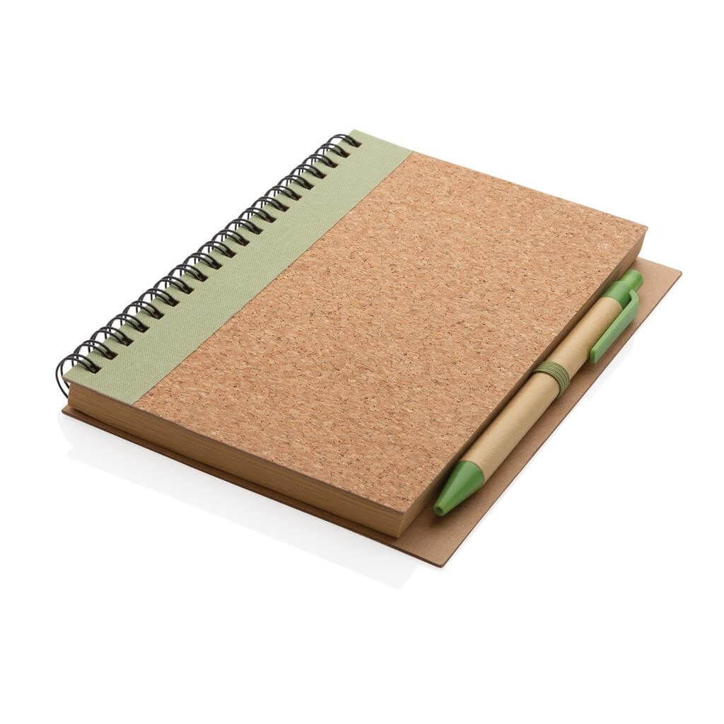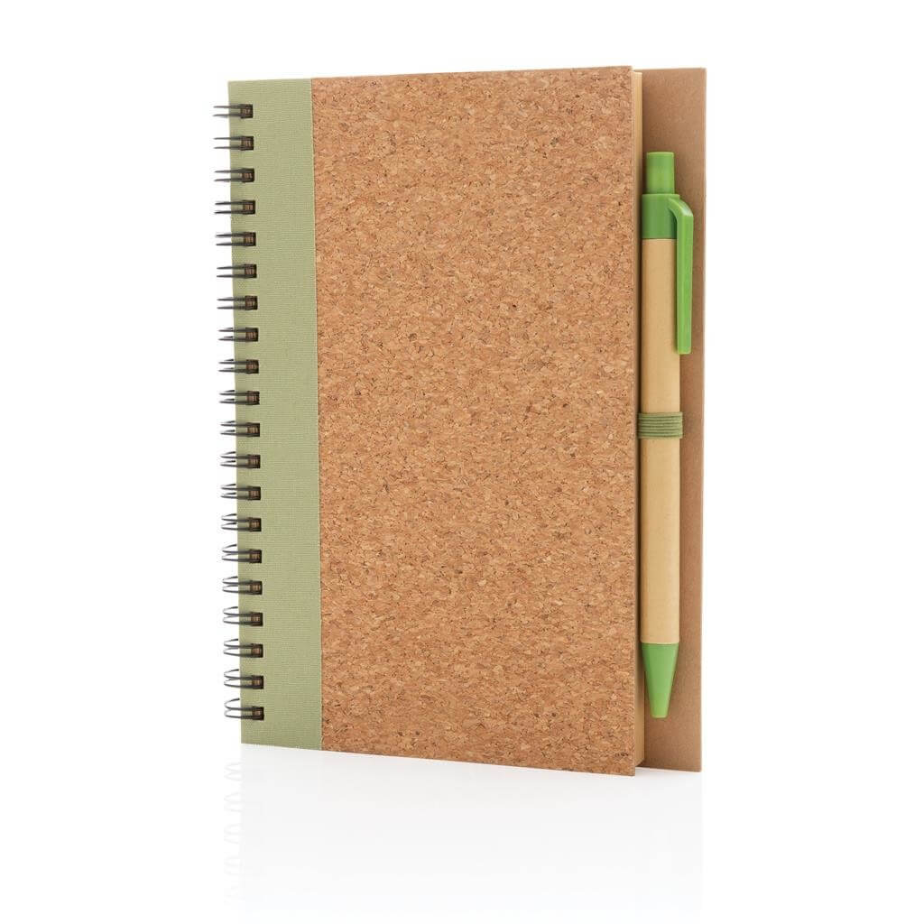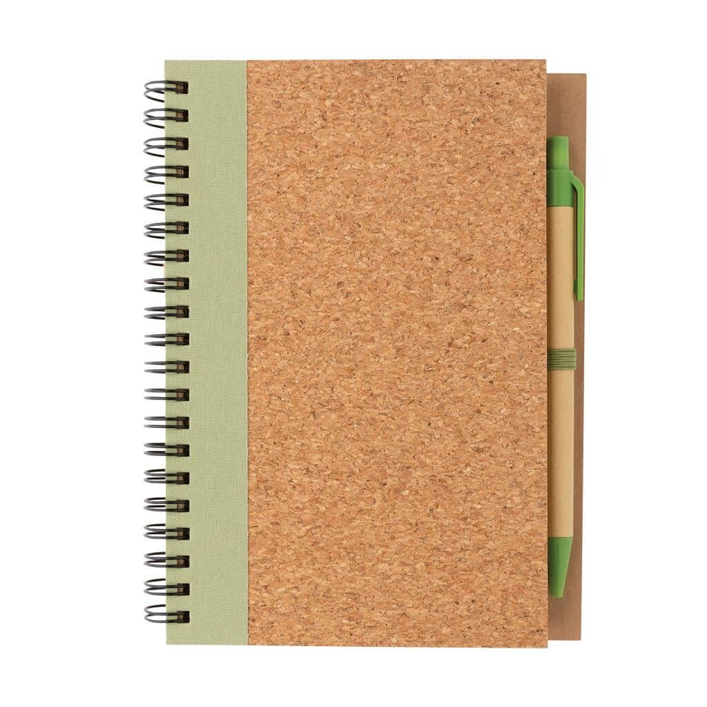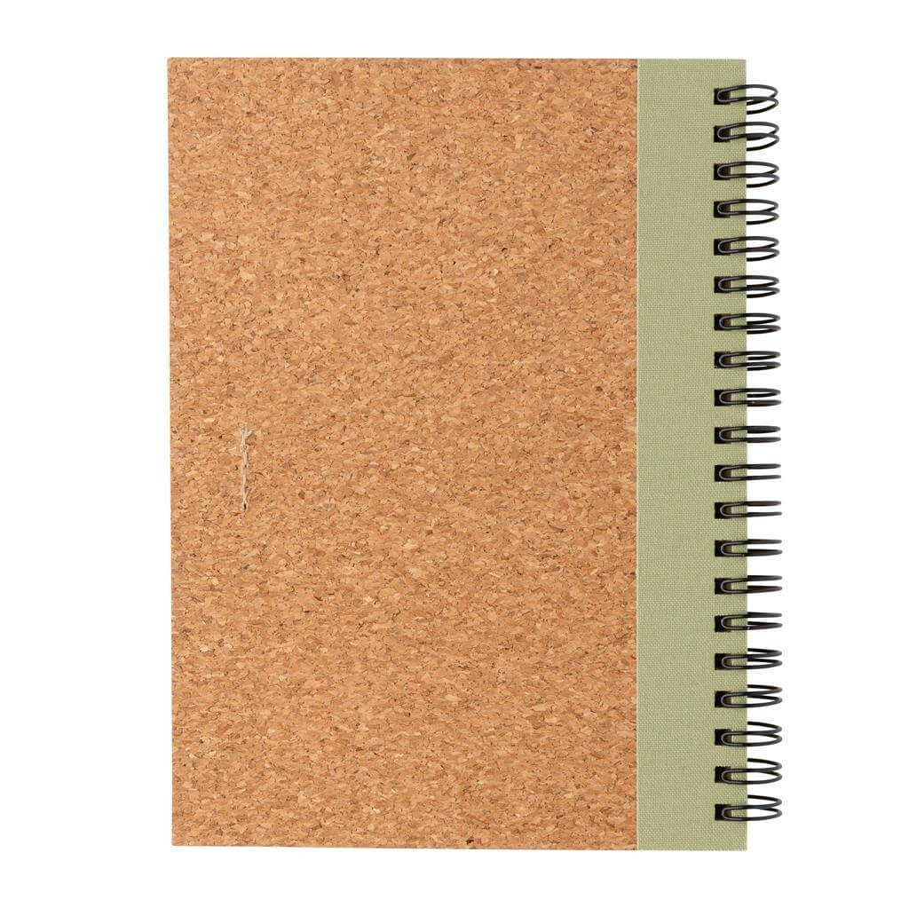 Poznámkový blok s kroužkovou vazbou a korkovým obalem. Obsahuje 70 stran/140 listů linkovaného krémového recyklovaného papíru o gramáži 70g/m2. Včetně kraftového pera v ladící barvě s německým inkoustem Dokumental pro psaní až 600m textu.