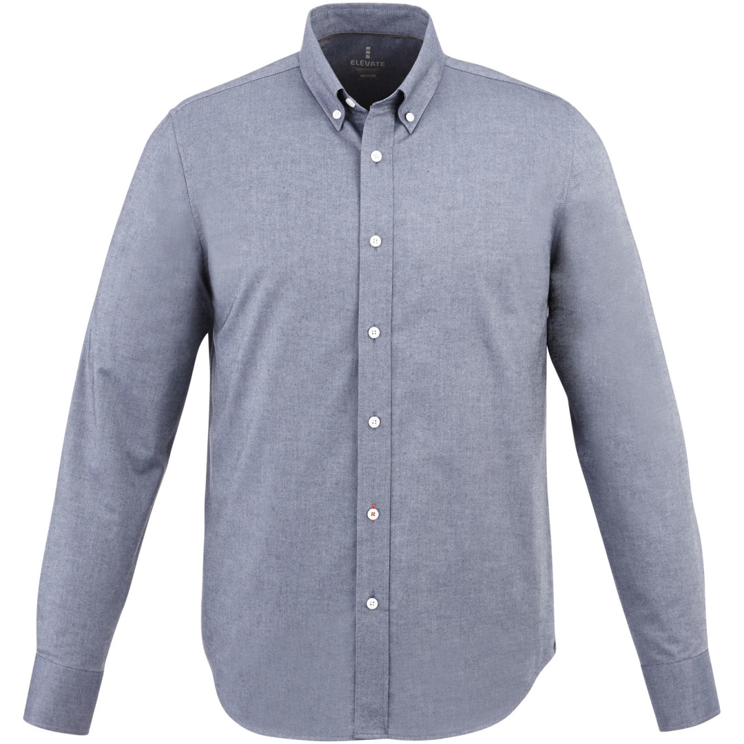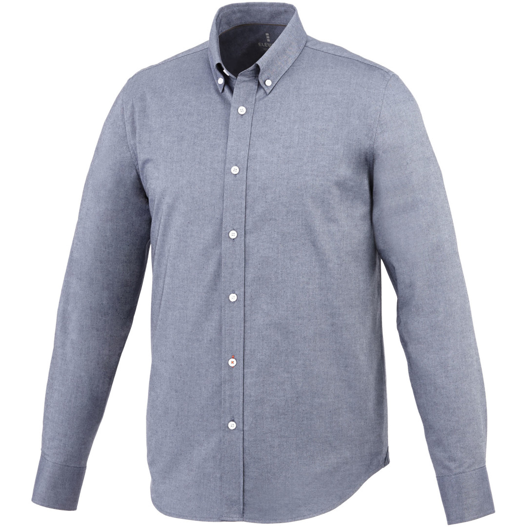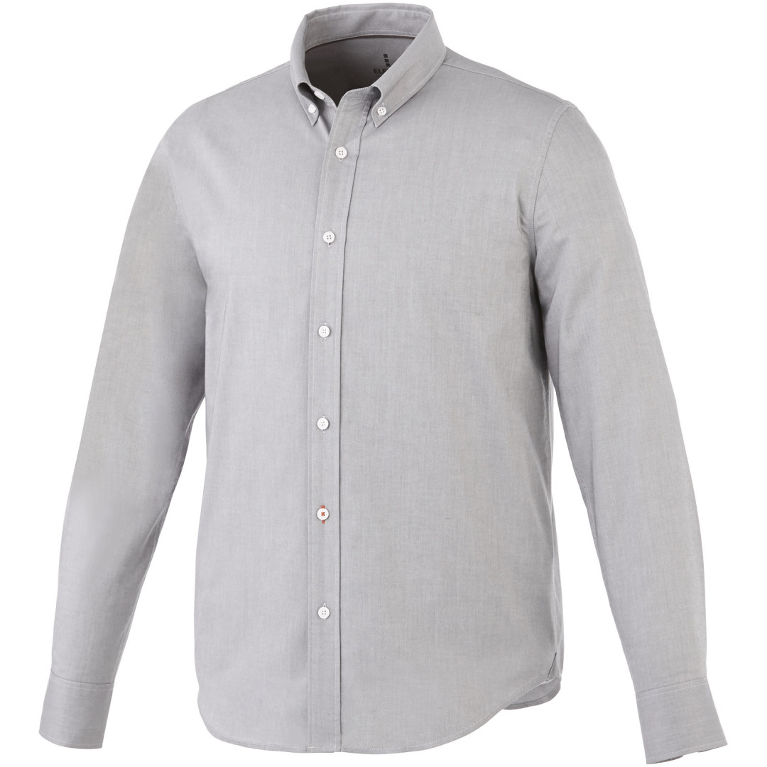 Límeček na knoflíčky. Nastavitelná manžeta s jedním záhybem. Druhá knoflíková dírka od spodního lemu s oranžovým stehováním. Saténové lemování vnitřního výstřihu. Gravírované perleťové knoflíčky. Potisk štítku technologií heat transfer pro větší pohodlí. Oxford100% Bavlna, 142 g/m2.