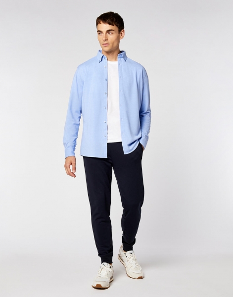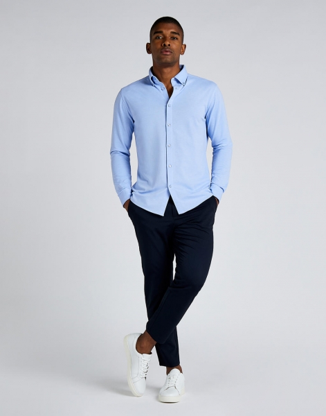 185 g/m² (White: 180 g/m²), 64% polyester, 34% bavlna, 2% elastan (Pique), límec na knoflíky, zadní panel, knoflíky v odpovídající barvě, nastavitelné manžety na 2 knoflíky, dvojitě prošité rukávy a boční švy, zaoblený spodní lem, náhradní knoflík, možnost praní do 60°C, jednoduché žehlení, přizpůsobený střih