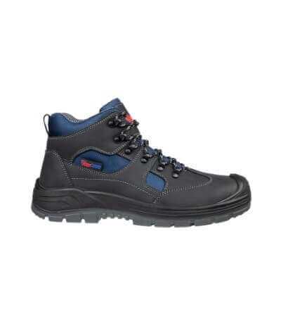 Svrchní materiál - hladká voděodolná kůže/textil, podšívka - prodyšná, bezpečnostní obuv S3, ochranná ocelová kaple, protipropichová ocelová stélka, SRC - protiskluzová podešev - duální PU, E - absorpce energie v oblasti paty, FO - odolná palivovému oleji, WRU - odolnost proti průniku vody, A - antistatická, certifikováno DGUV 112-191.