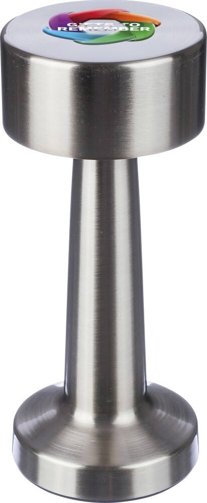 Stolní lampa z kovu a ABS plastu s 24 LED diodami a třemi režimy svícení (bílý, neutrální, teplý) ovládanými dotykovým senzorem na horní straně. Součástí je baterie s kapacitou 800 mAh a nabíjení přes Type-C kabel o délce 1 metru. Lampa je stmívatelná pro každý režim svícení a má tlačítko zapnutí/vypnutí na spodní straně. Jednotlivě baleno v hnědé kartonové krabici. Výška: 21,5 cm