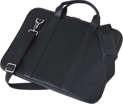 Kožená taška na notebook 15" se zavíráním na zip. Taška má uvnitř 4 kapsy, 1 oddíl na zip a jeden oddíl na notebook se zavíráním na suchý zip. Taška má dvě krátká kožená ucha a dlouhý nastavitelný ramenní popruh z nylonu.