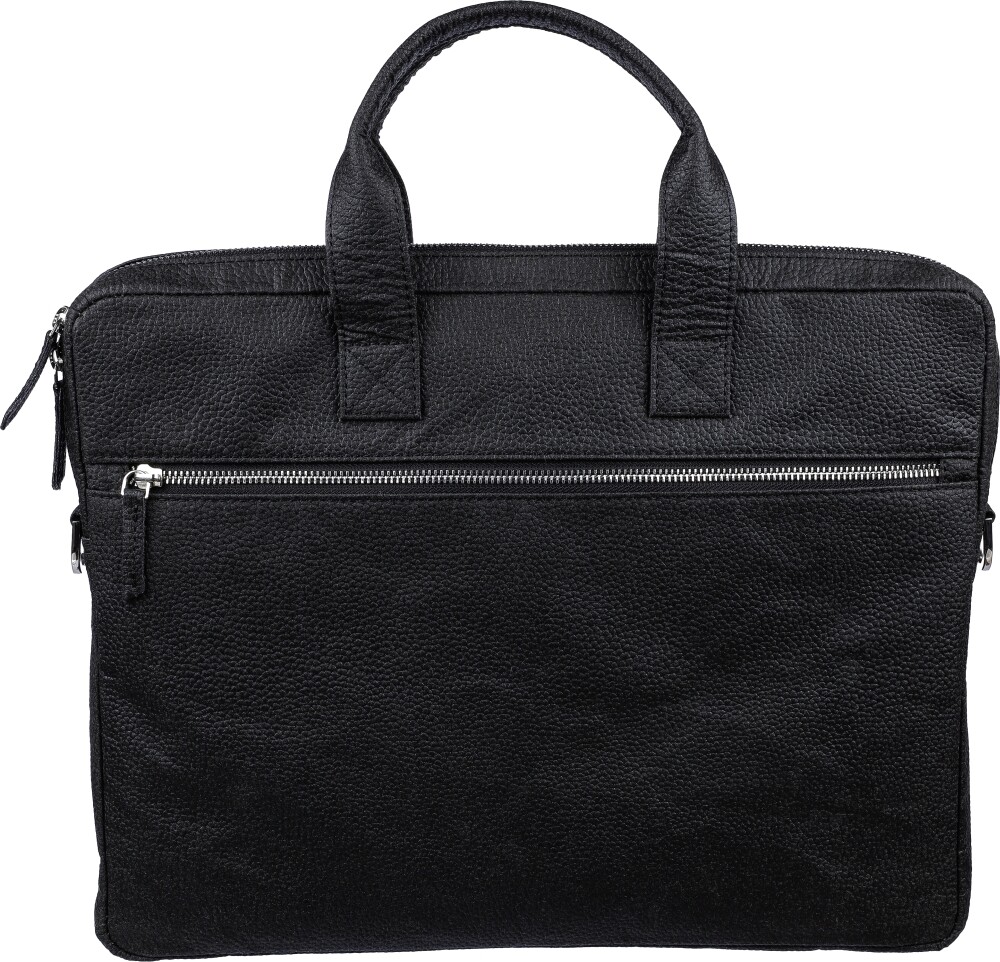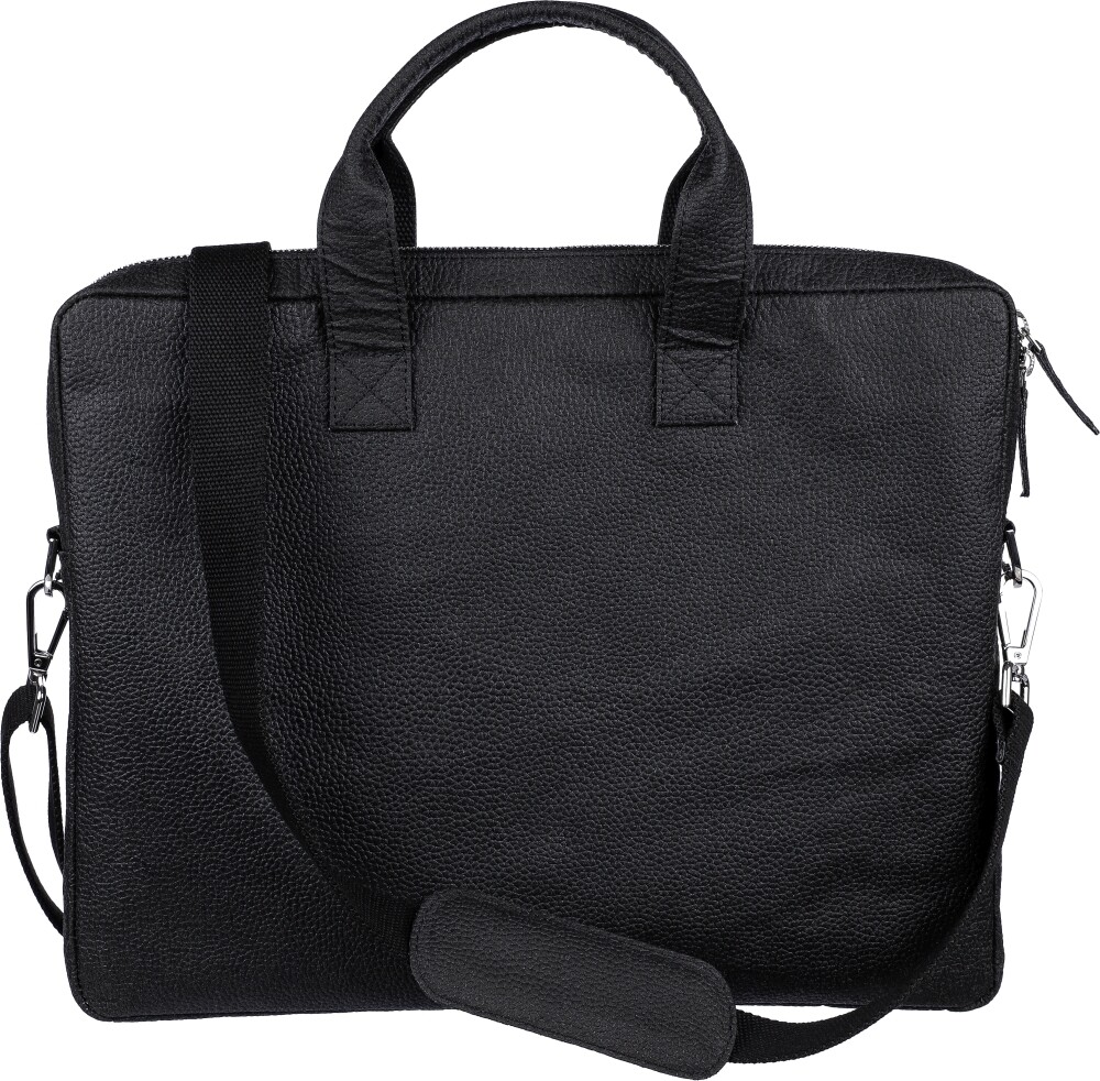 Kožená taška na notebook 15 palců s přihrádkami na zip na přední a horní straně a polstrovanou kapsou na notebook se zapínáním na suchý zip. Uvnitř několik menších kapes. S nastavitelnými ramenními popruhy. Materiálové složení: 50% bavlna, 30% rajče, 20% biopolymer.Rozměry: 6 x 40 x 30 cm