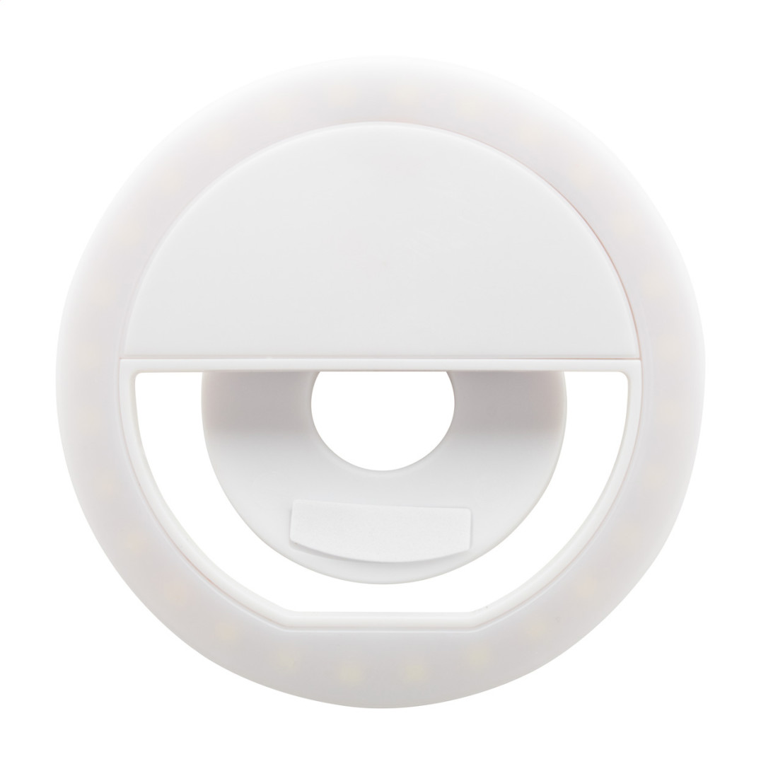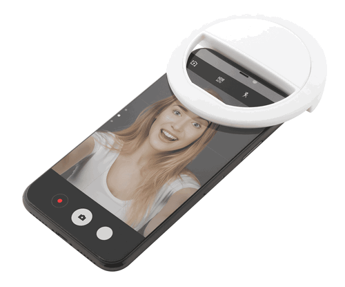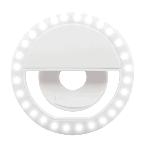Plastové prstenové světlo s 28 LED pro mobilní telefony na selfie. Se 3 nastavitelnými úrovněmi jasu a vestavěnou dobíjecí baterií. Včetně USB nabíjecího kabelu.