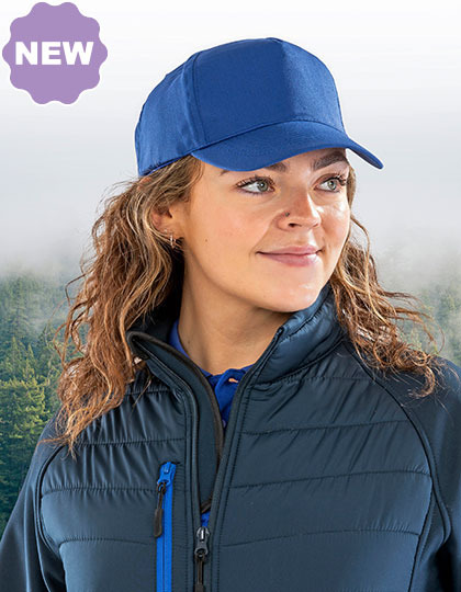100 % recyklovaný polyesterový kepr. Předohnutý kšilt se 6 prošitími, 210 g/m². Nastavovač velikosti se suchým zipem. Bezešvý přední panel. Zpevněný přední panel. Obšité větrací otvory. 5panelová. Materiál vyrobený z nejkvalitnějších udržitelných přízí s použitím 100 % PET lahví recyklovaných po spotřebitelích, který je udržitelnou alternativou běžných přízí. Vyrobeno z 1 (1litrové) plastové lahve. Bez štítku.