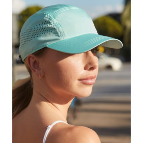 Lehký a prodyšný materiál, měkká potní páska, laserované větrací otvory, nastavitelné zapínání na klip s popruhem, regulující vlhkost a rychleschnoucí, štítek TearAway, nesmí se prát, nelze žehlit, nelze sušit v sušičce, nelze chemicky čistit.