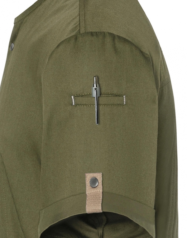 Inovativní udržitelná kuchařská blůza, která kombinuje městský vzhled a přirozený půvab